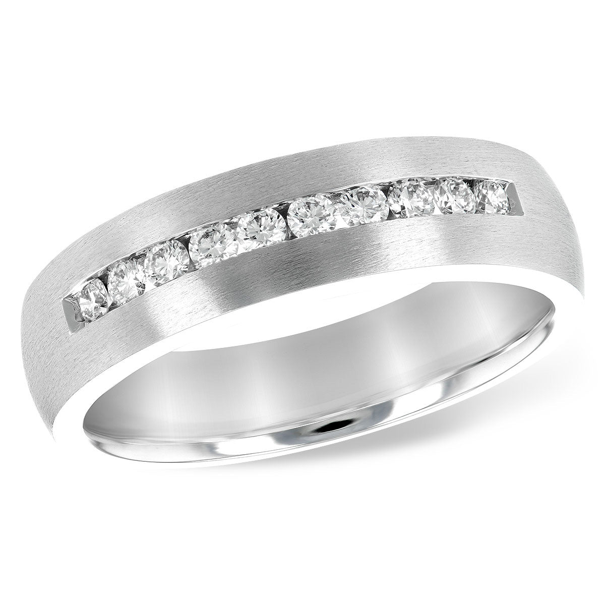14K White Gold Men’s Channel Set Diamond Brush Finished Wedding Band