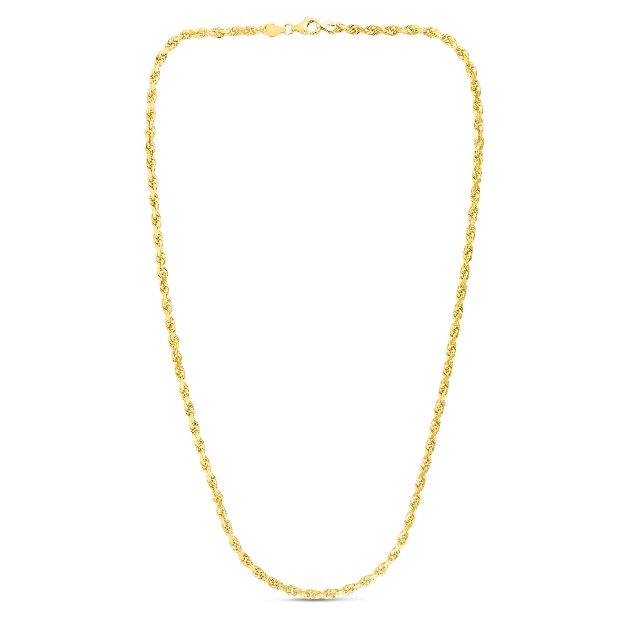 Fashion an authentic look with this 10K Gold 5.0mm Solid Diamond Cut Royal Rope Chain with Lobster Lock! Intertwined links give it the unmistakable look of a genuine rope - something that has been adorning necks for centuries, going all the way back to the Egyptians and Greeks.