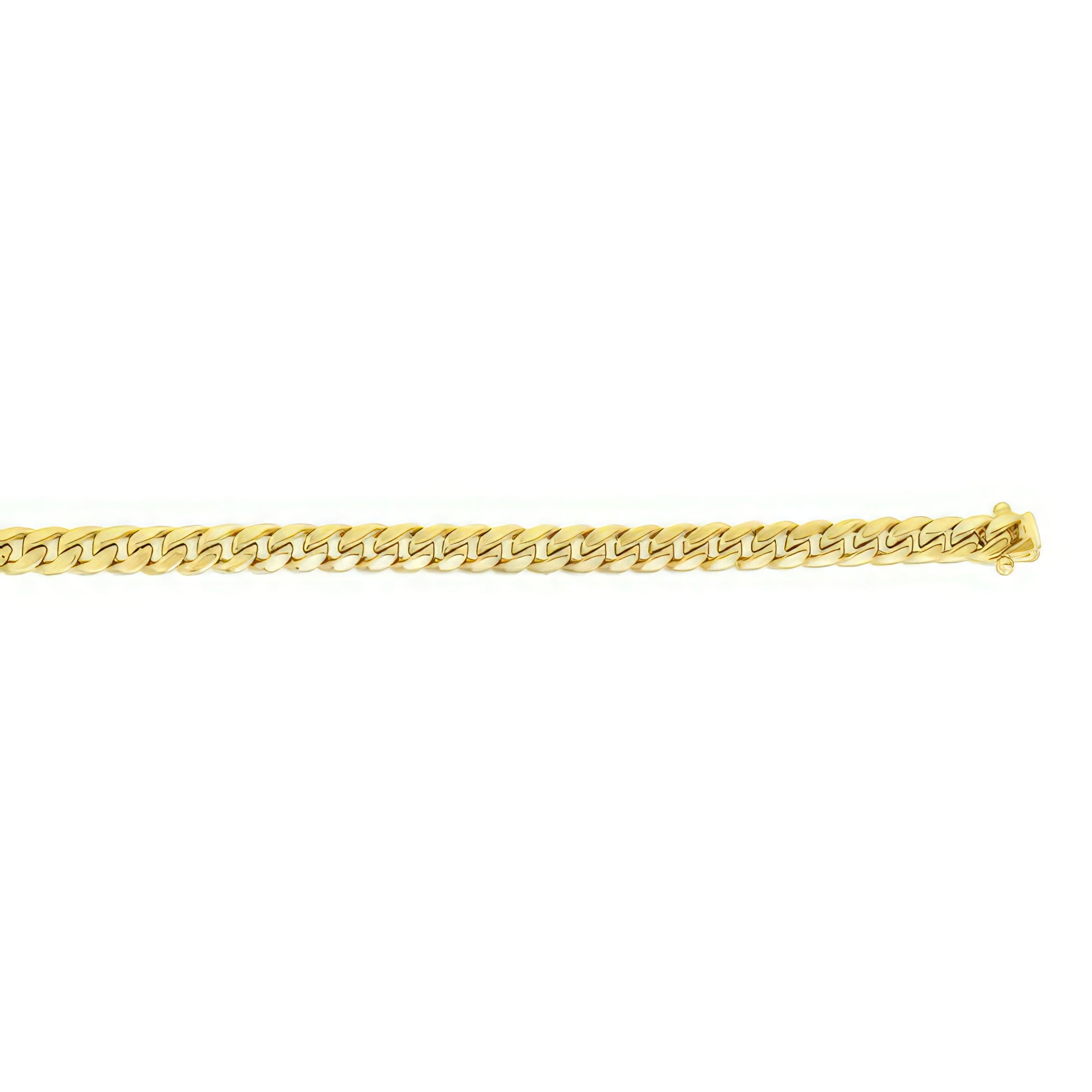 Make a statement with this stunning 10K Yellow Gold 6.1mm Semi-Solid Classic Miami Cuban Bracelet. Bold and eye-catching, its heavy box lock adds sophisticated elegance to your look. A timeless statement of luxury, this 8.5" bracelet is perfect for the discerning wearer.