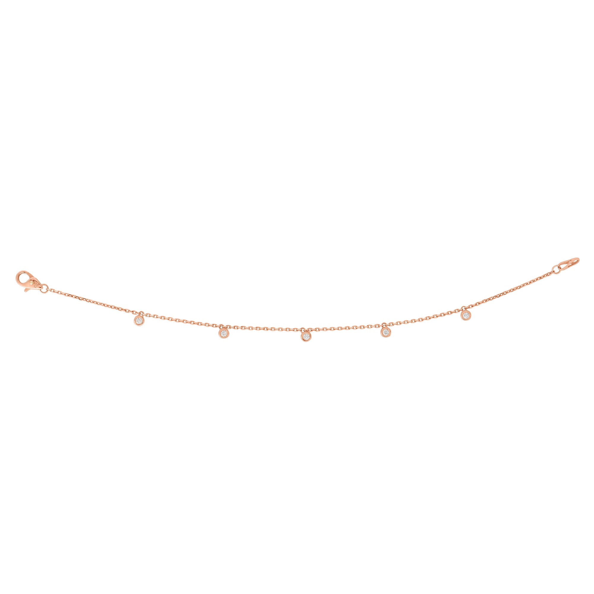 Elevate your style to a higher plane with this exquisite 14K Rose Gold .15 Carat Diamonds by the Yard Bracelet adorned with five dazzling hanging diamonds. Crafted with sophistication and finesse, this 7" bracelet with lobster clasp is sure to make an exquisite statement, lending a sound of luxury and exclusivity at every turn.