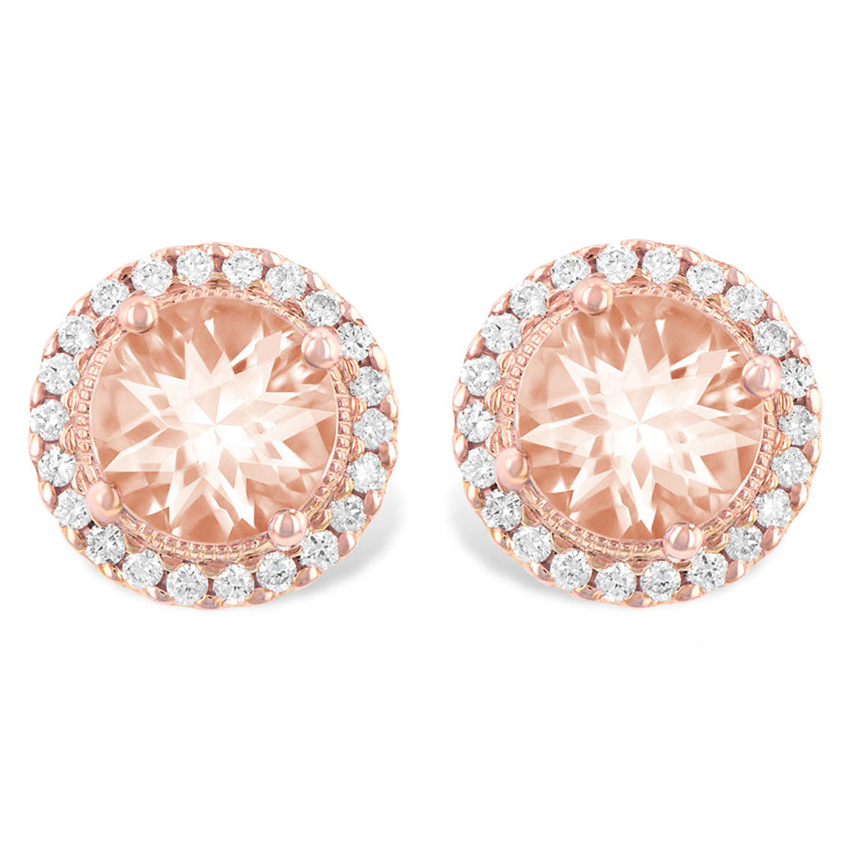 Round 14K Rose Gold Morganite & Diamond Halo Earrings