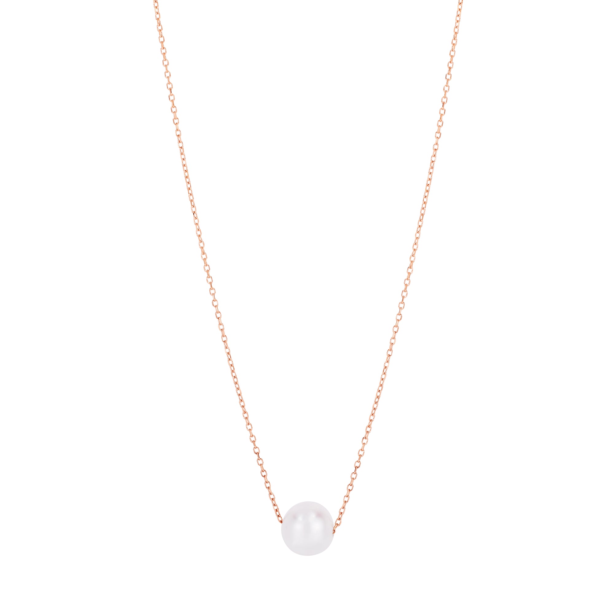 14K Rose Gold Pearl Necklace Solitaire Necklace