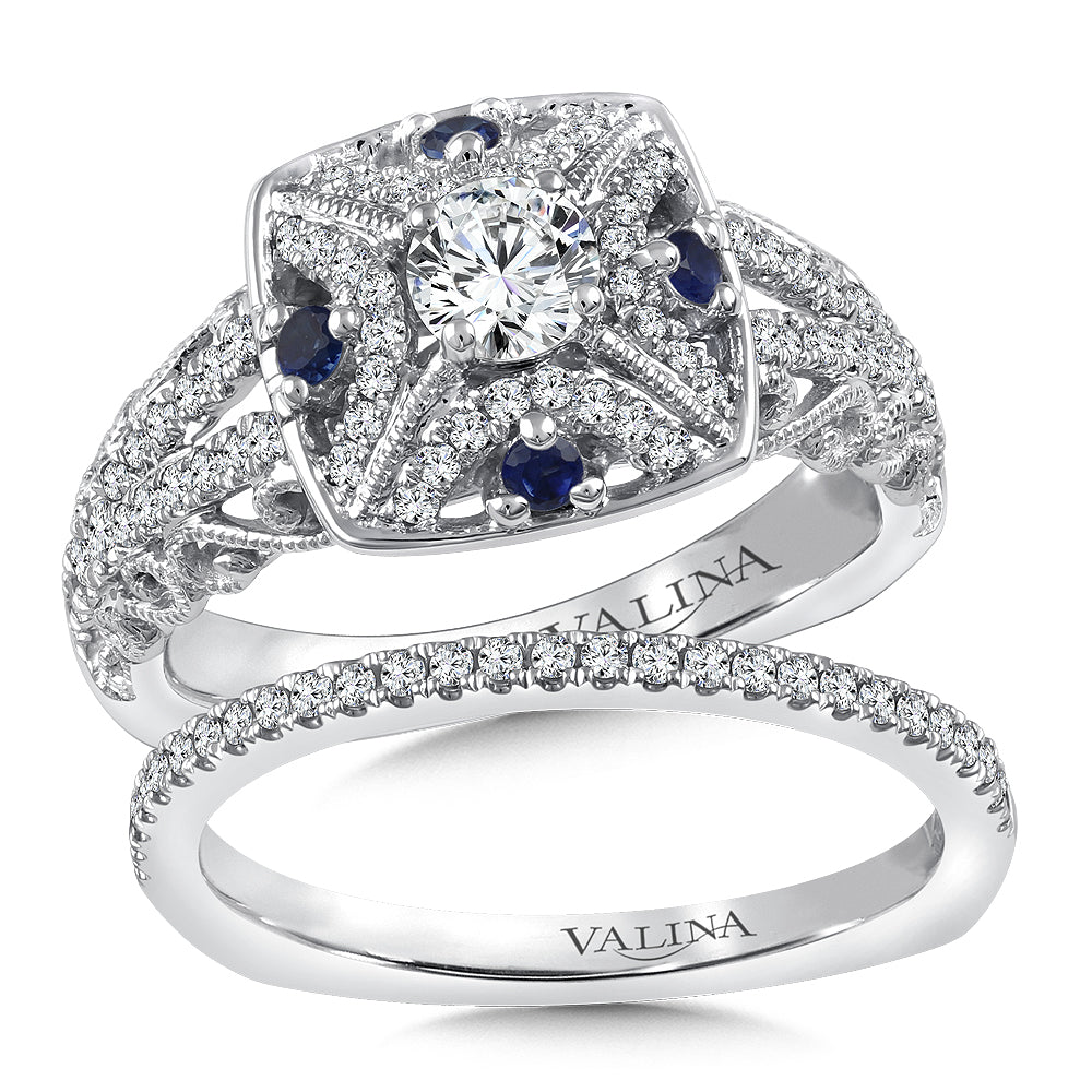 14K Two-Tone Gold Vintage Diamond And Blue Sapphire Halo Engagement Ring