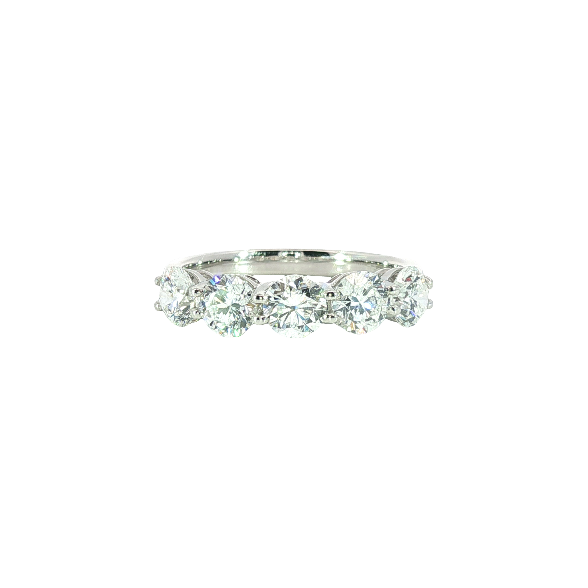 Exquisite ring crafted in 14K white gold. This magnificent ring features a series of round cut diamonds set in a harmonious arrangement. The brilliant cutting style accentuates each Lab diamond's radiance, creating a captivating sparkle. This elegant white gold ring offers a timeless design that complements any style.