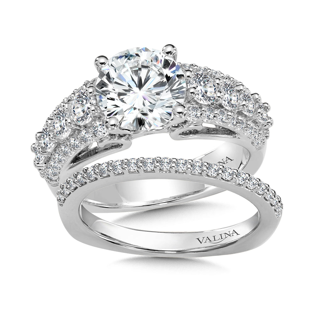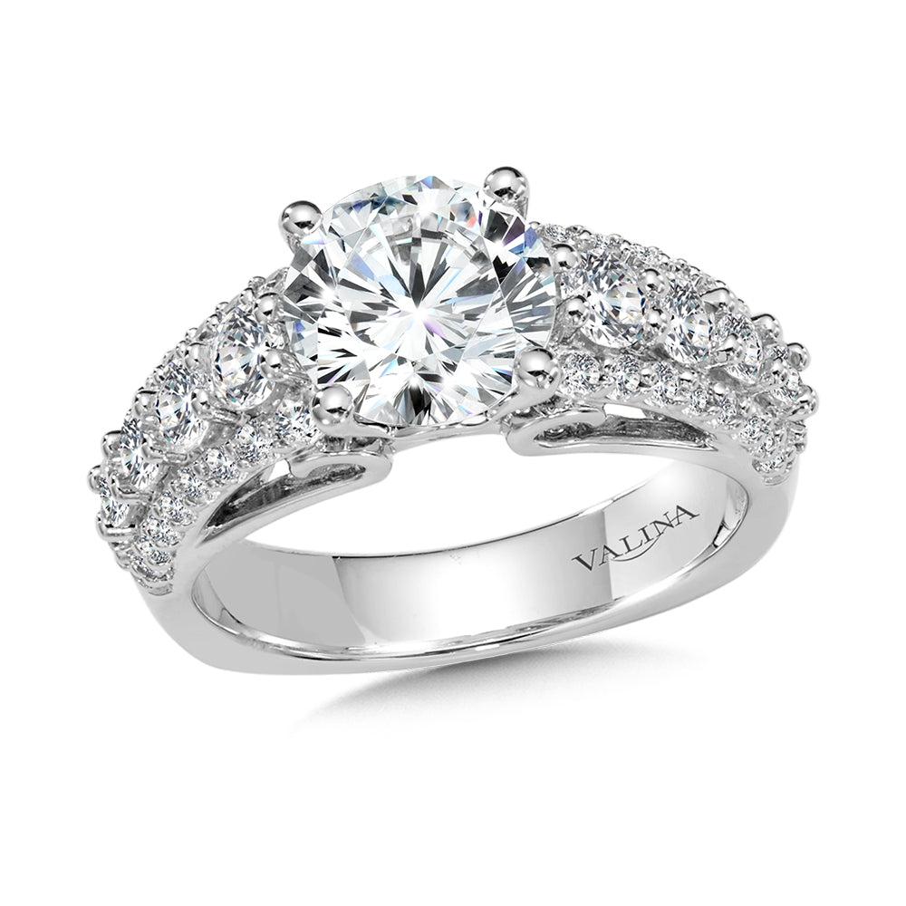 14K White Gold Accent Stone Style Diamond Engagement Ring