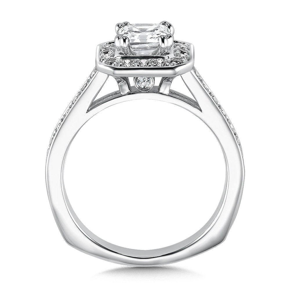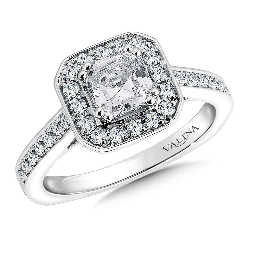 14K White Gold Asscher Cut Halo Diamond Engagement Ring