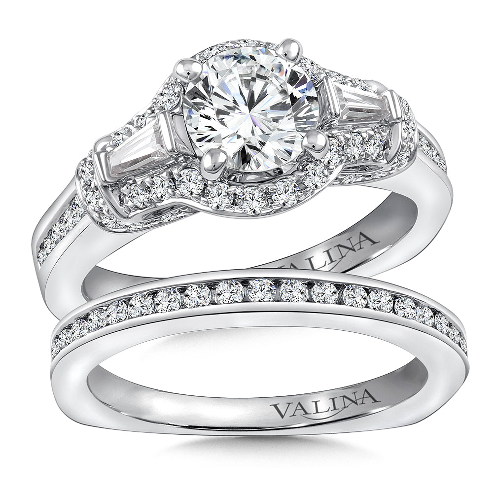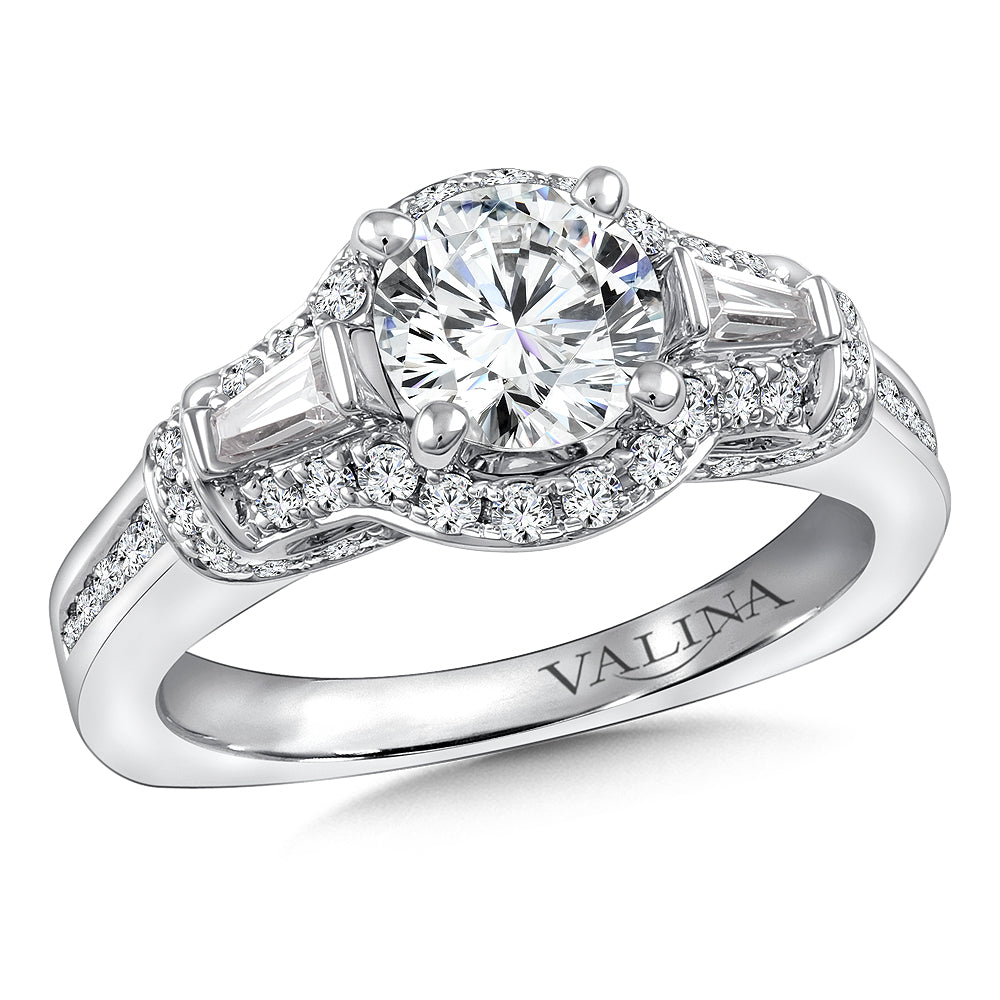 14K White Gold Baguette Round Accent Stone Diamond Engagement Ring