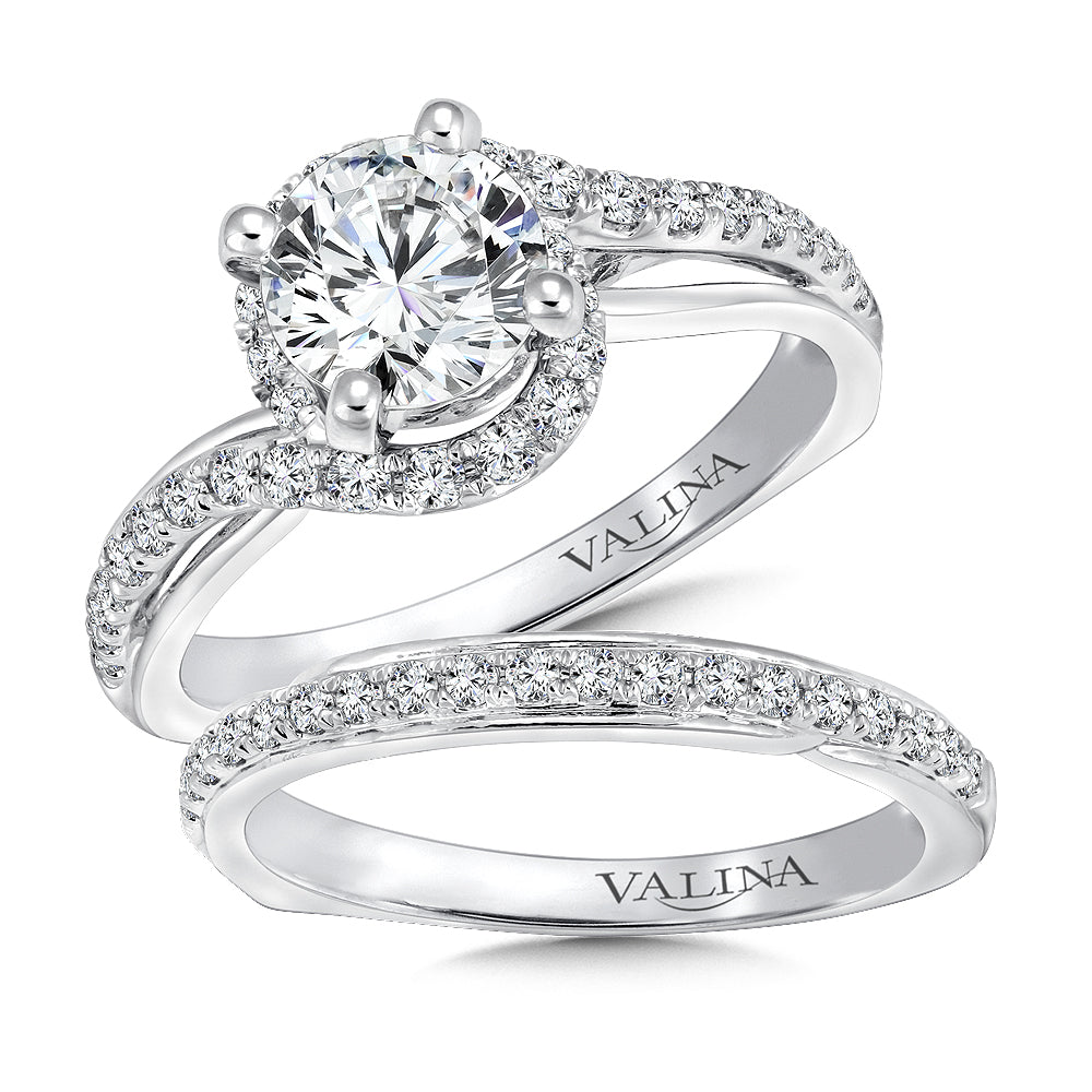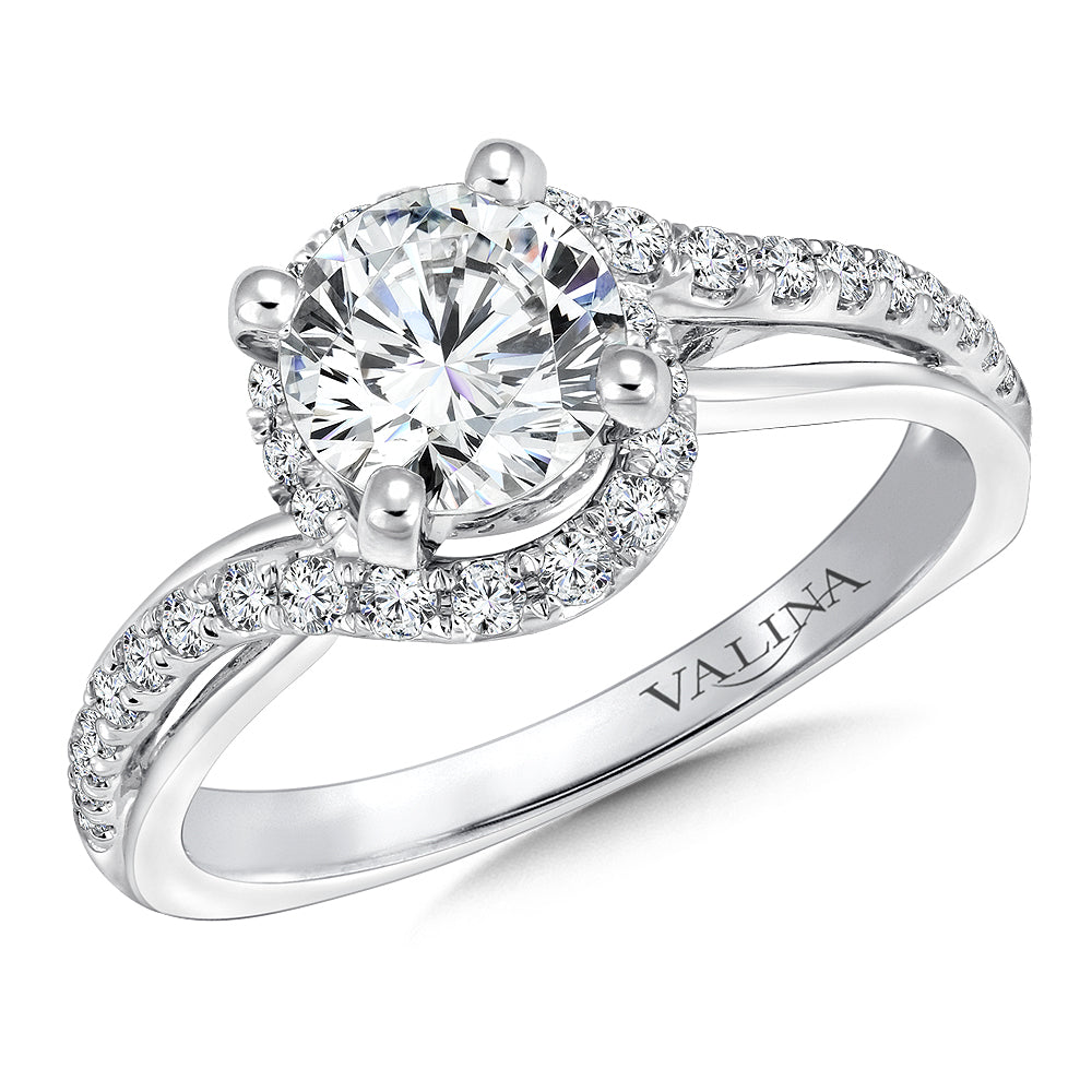 14K White Gold Bypass Diamond Halo Engagement Ring