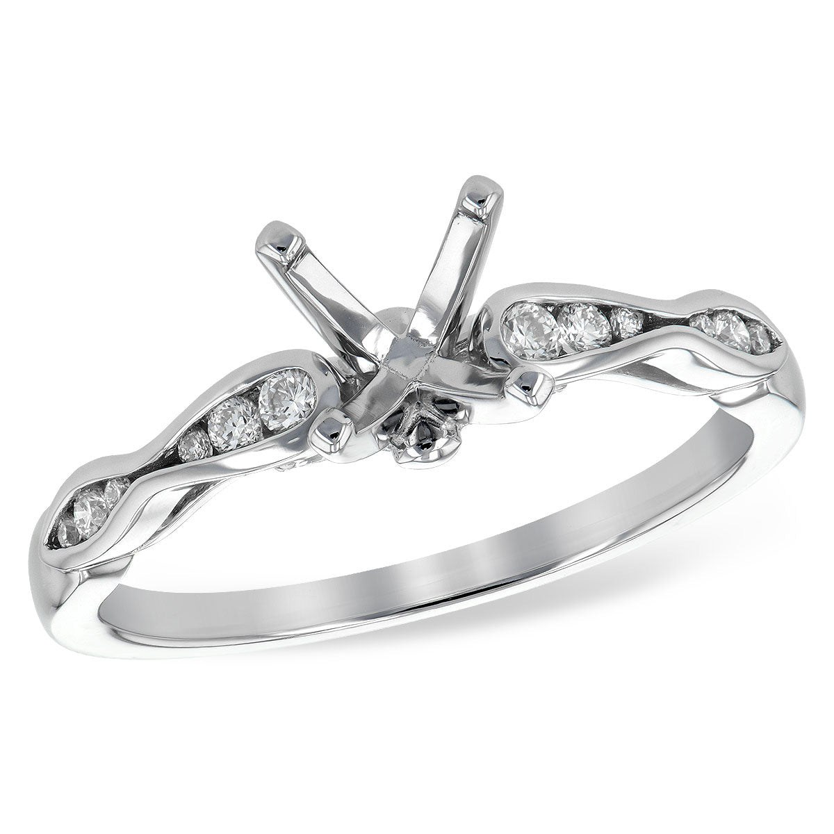 14K White Gold Engagement Ring is set with graduated diamonds in a pinched channel-set band. The ring contains .14 carat total weight G color and SI1 to SI2 clarity round brilliant cut diamonds to accommodate a 1.00-carat center stone.