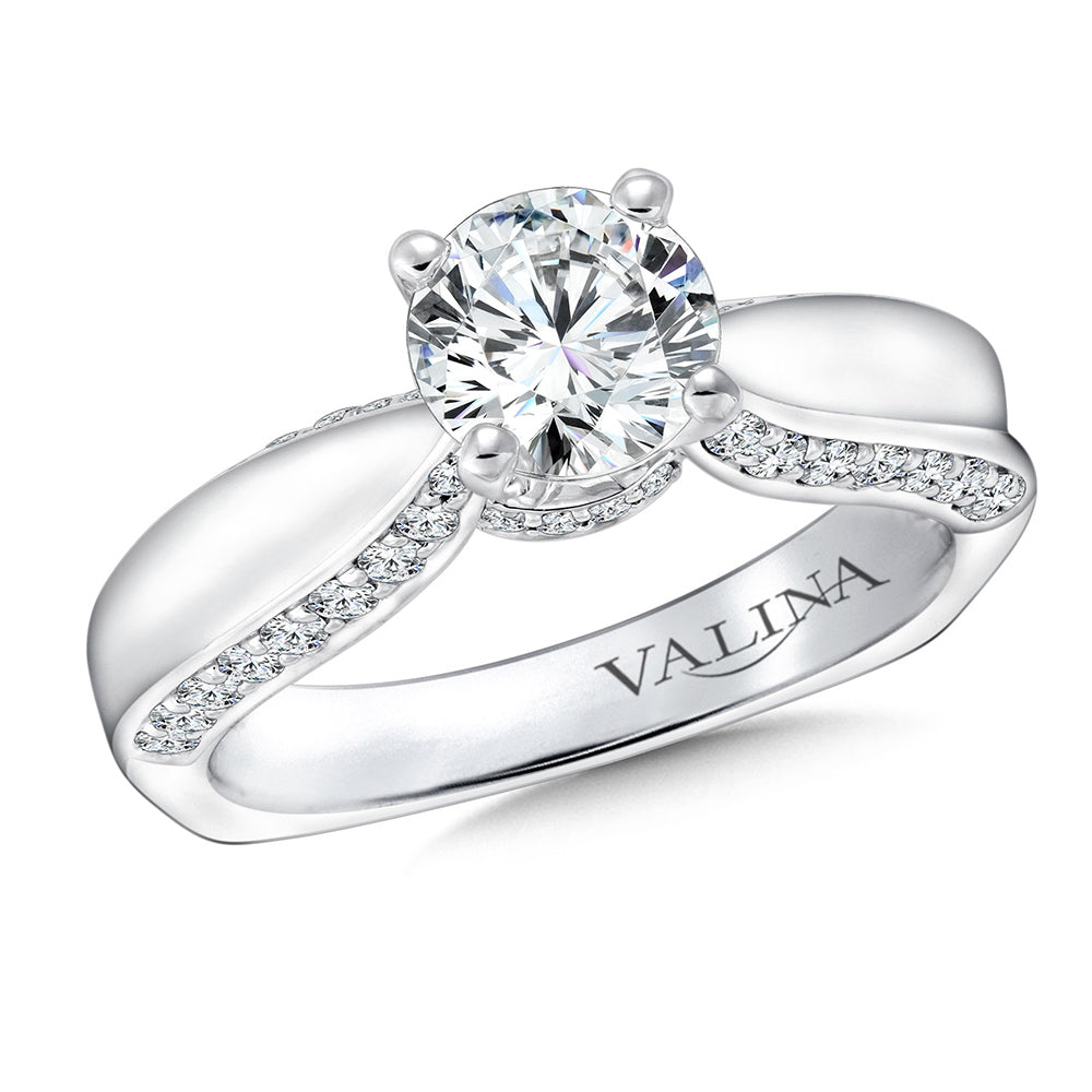 14K White Gold Contoured Crown Diamond Engagement Ring