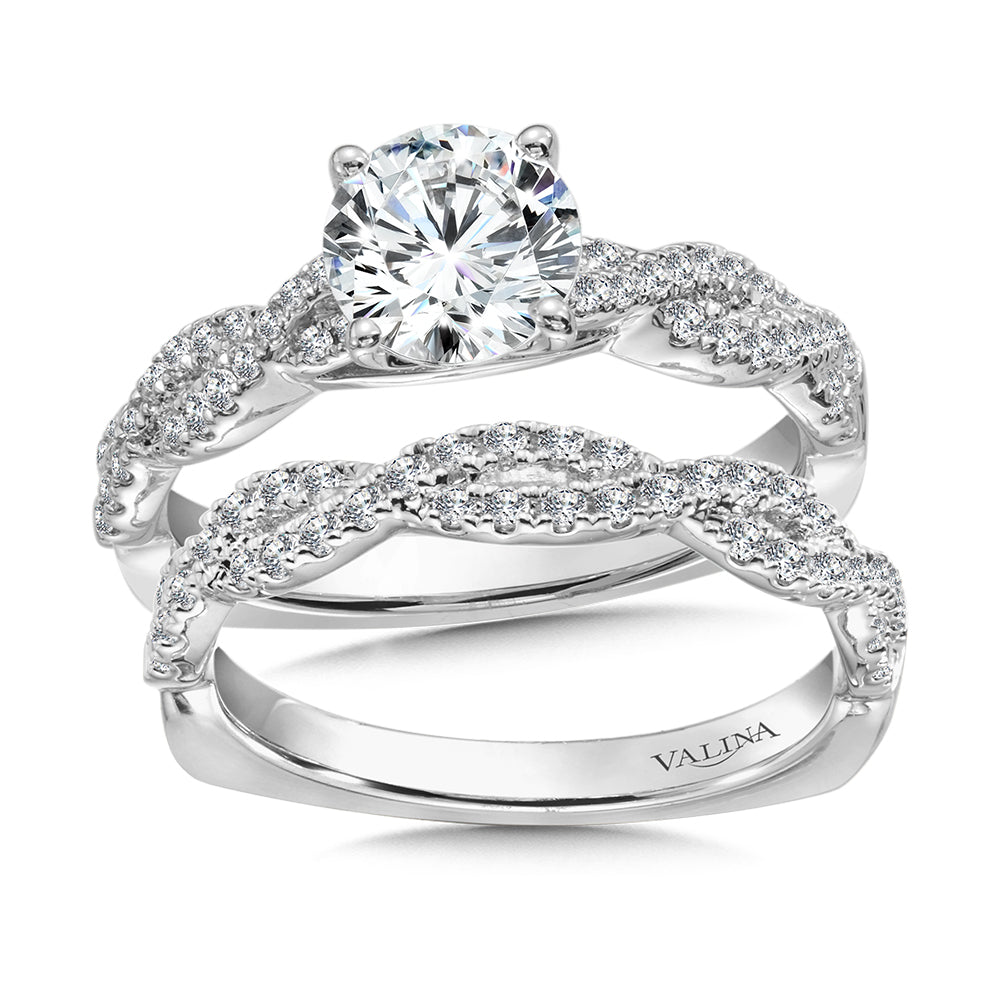 14K White Gold Criss Cross Straight Diamond Engagement Ring