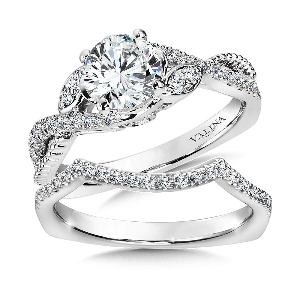 14K White Gold Crisscross Rose Gold Detail Diamond Engagement Ring