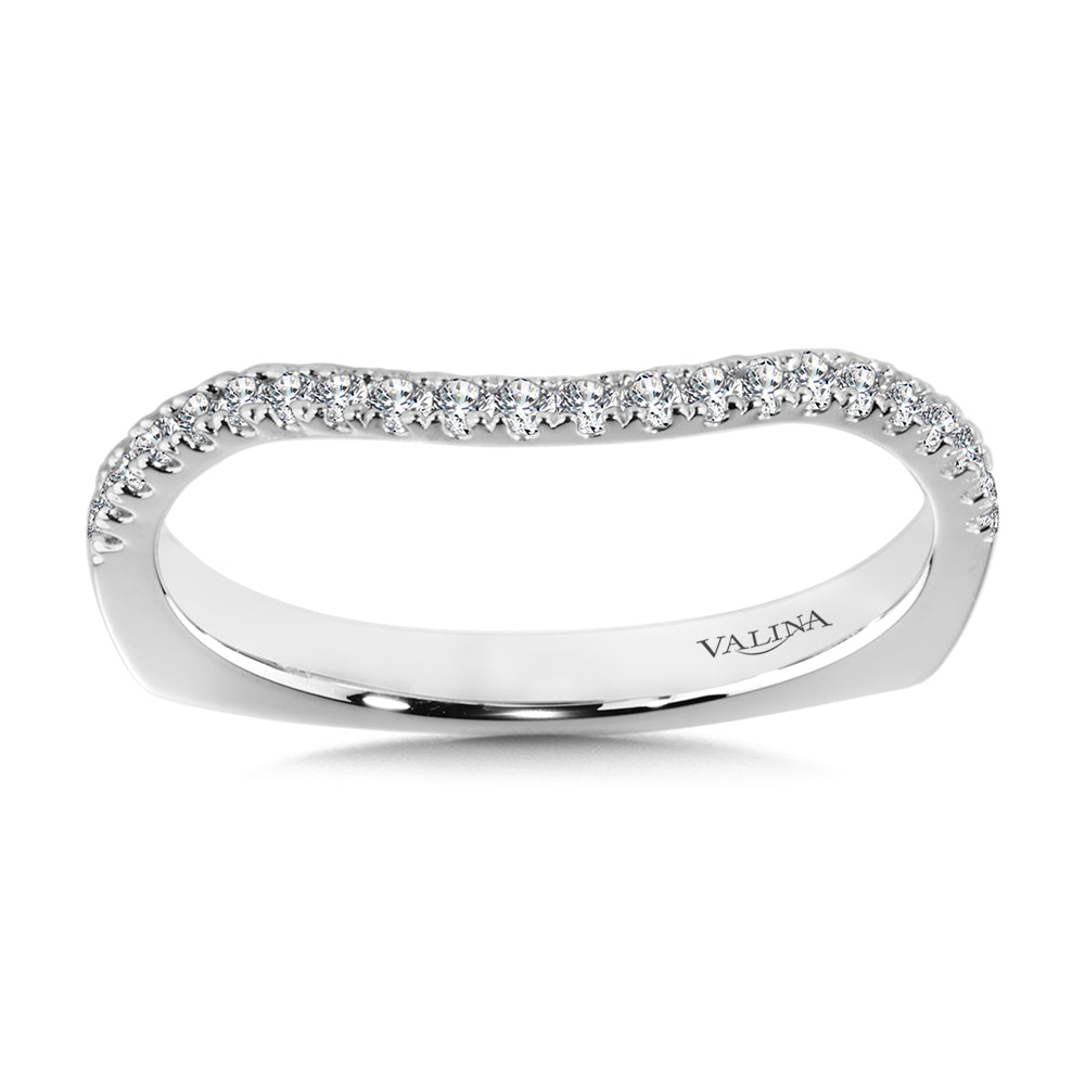 14K White Gold Curved Diamond Wedding Band