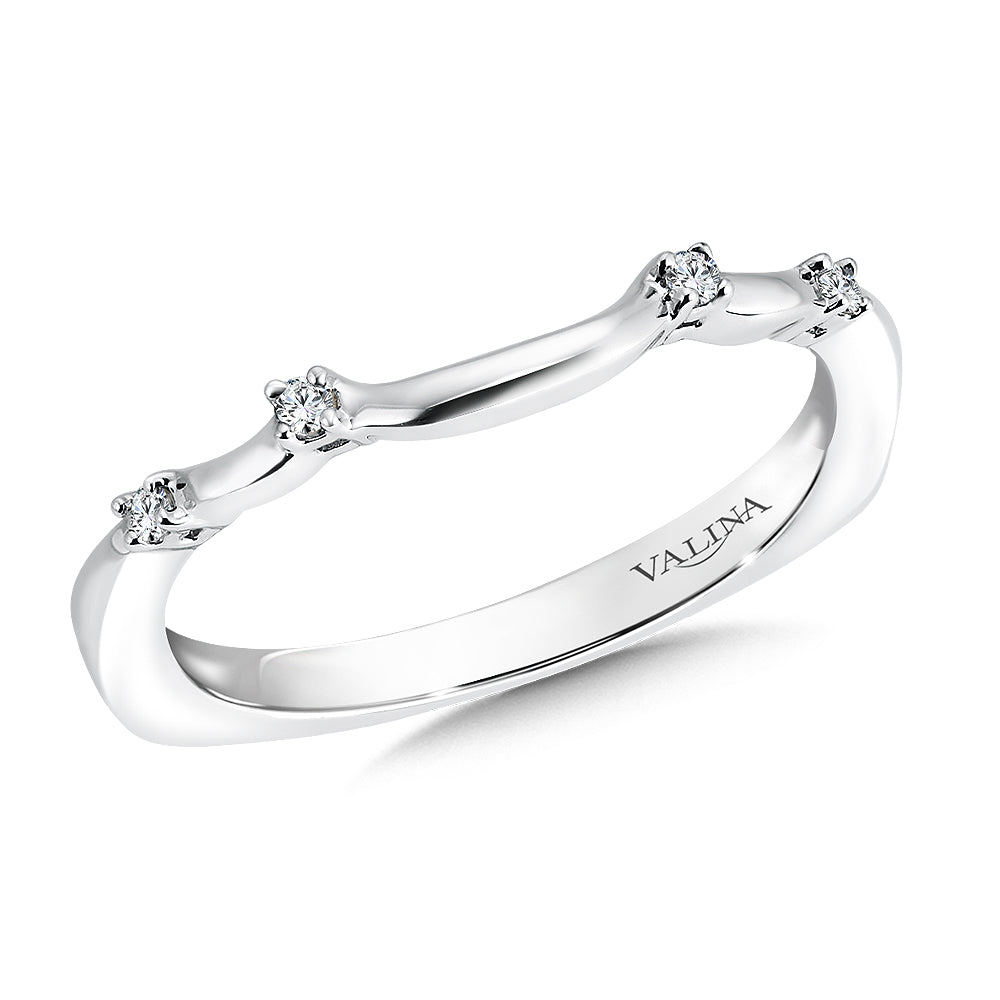 14K White Gold Curved Diamond Wedding Band