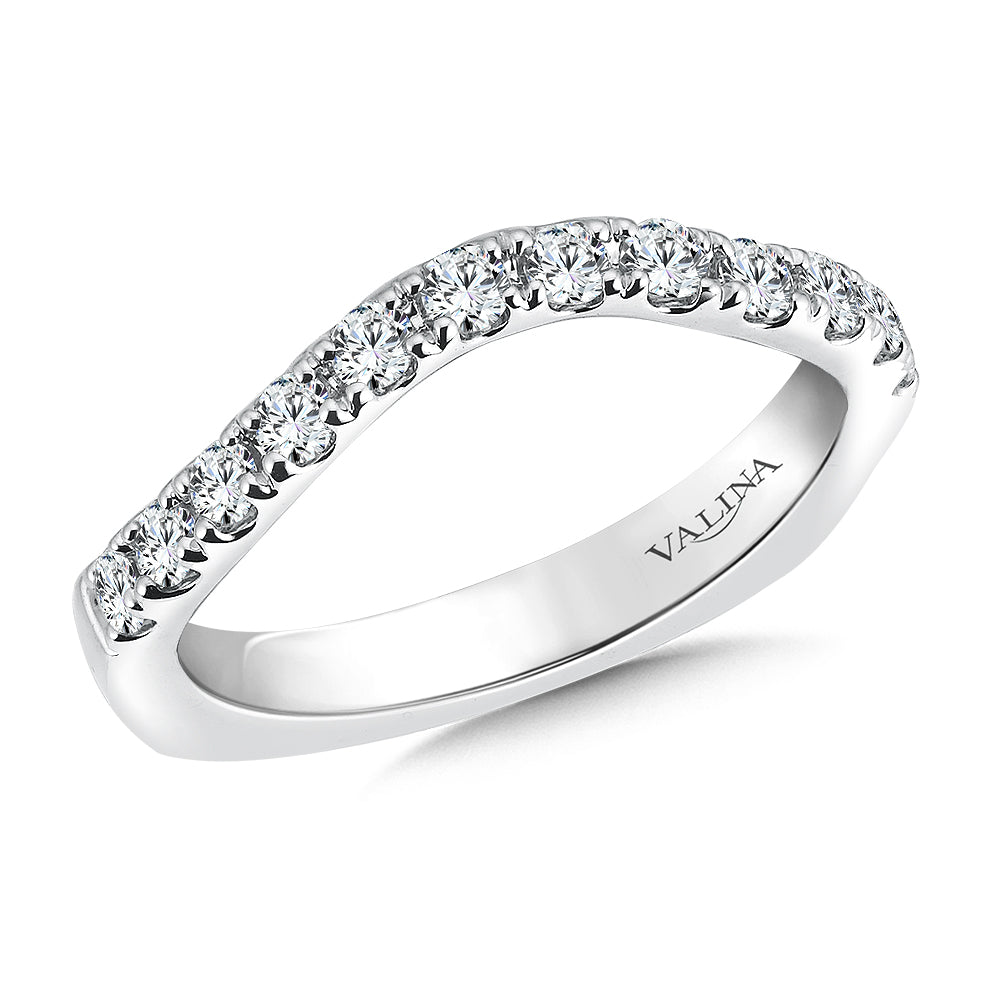 14K White Gold Curved Diamond Wedding Band