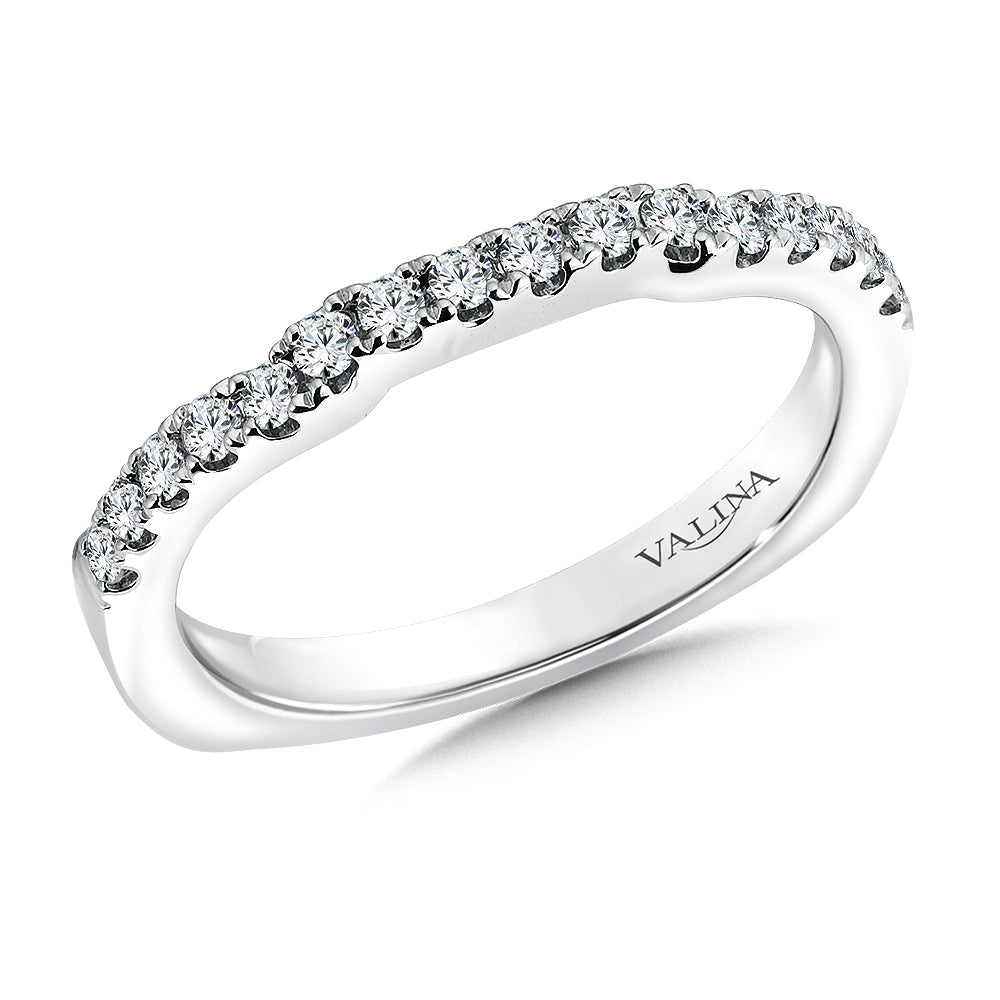 14K White Gold Curved Diamond Wedding Band