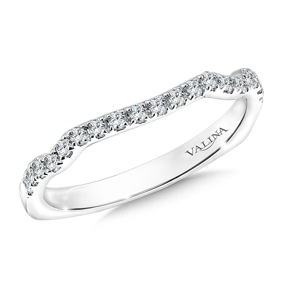 14K White Gold Curved Diamond Wedding Band