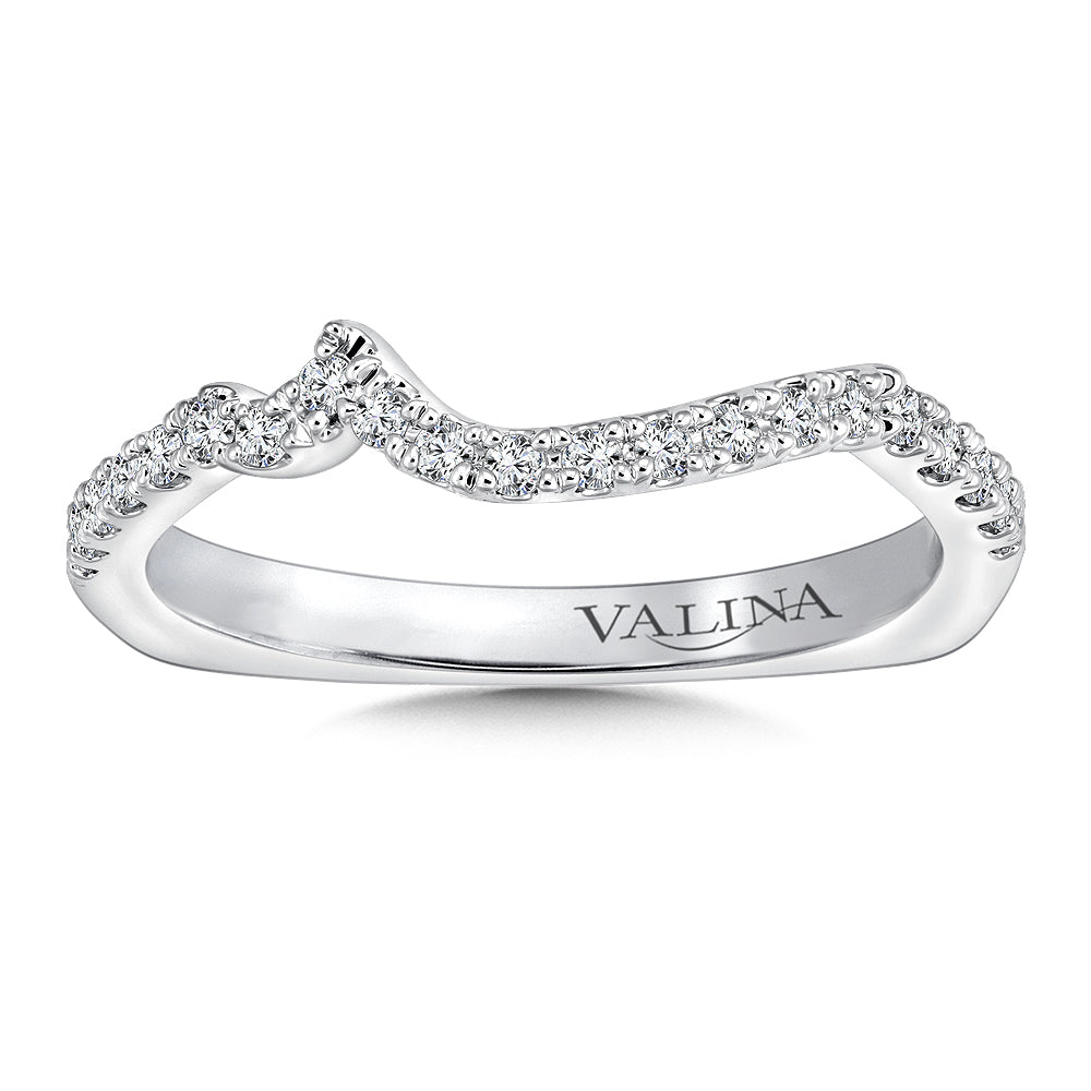 14K White Gold Curved Diamond Wedding Band