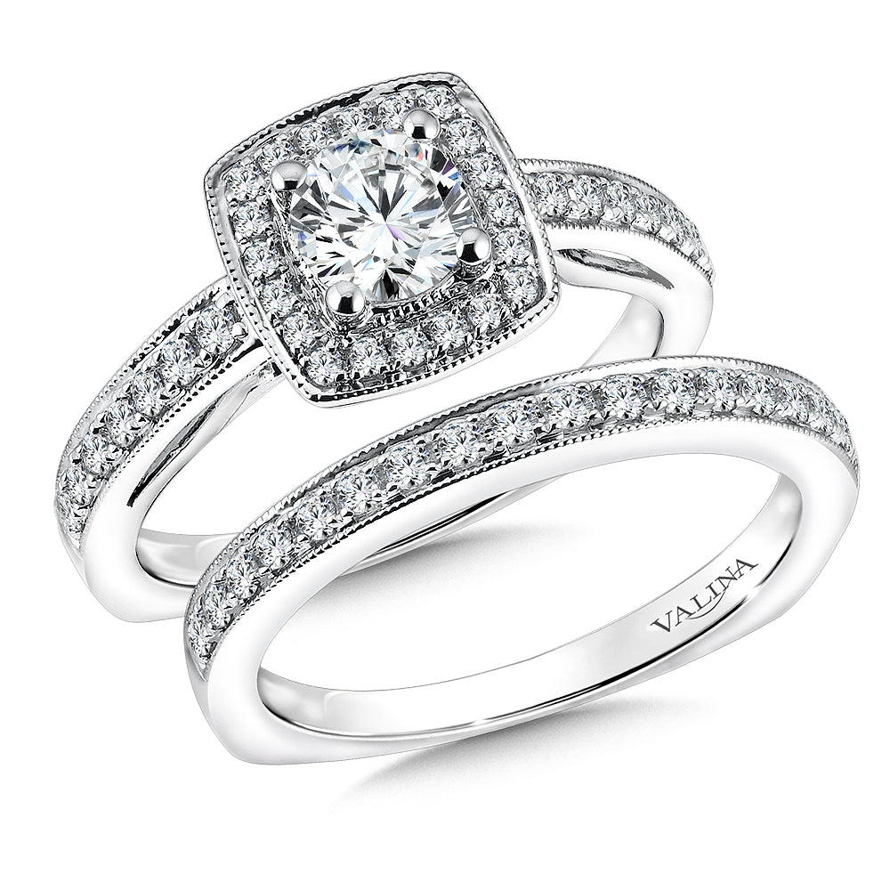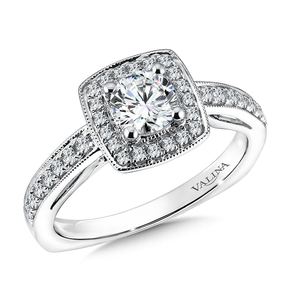 14K White Gold Cushion Shape Milgrain Halo Diamond Engagement Ring