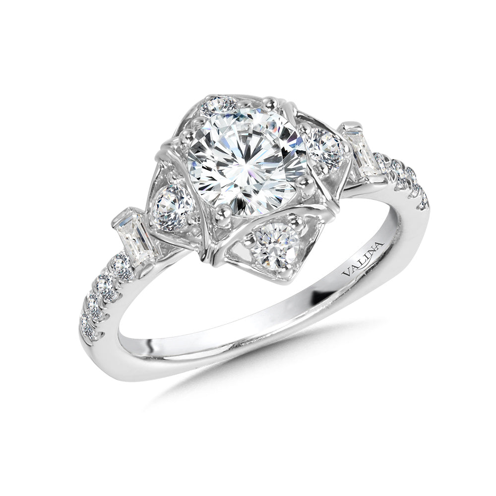 14K White Gold Cushion-Shaped Halo Engagement Ring