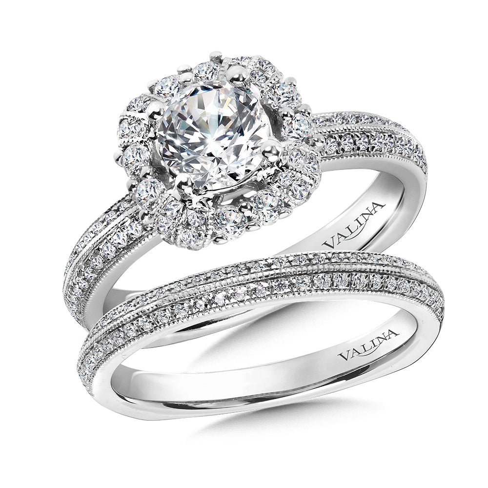 14K White Gold Decorative Milgrain Halo Engagement Ring