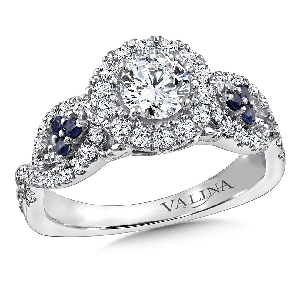 14K White Gold Diamond Halo & Blue Sapphire Infinity Engagement Ring