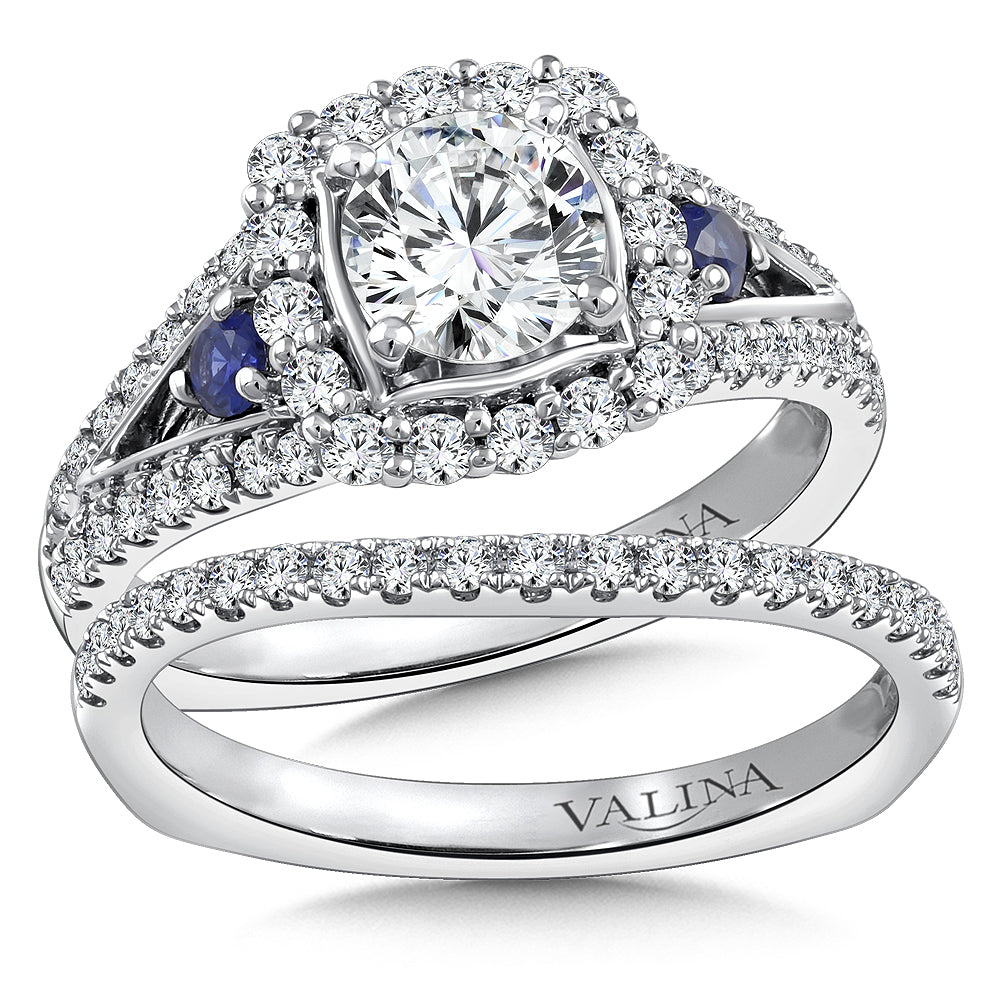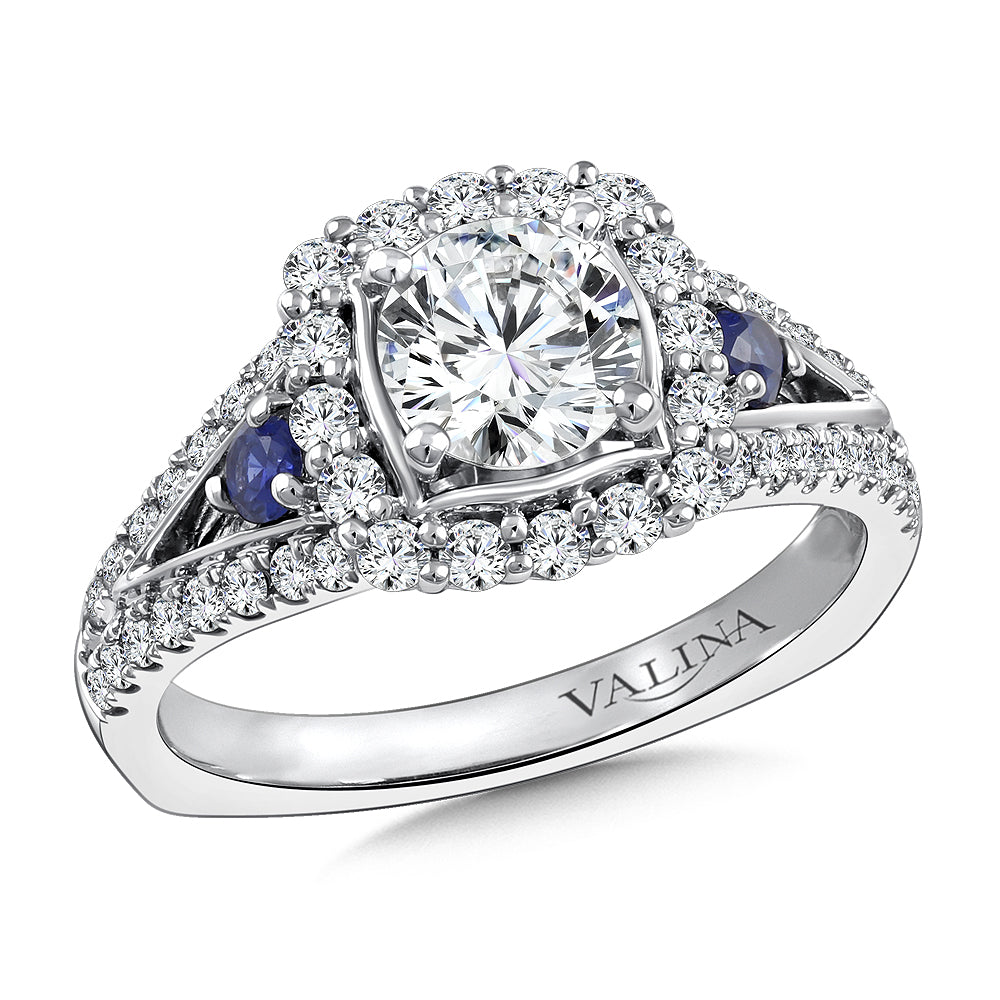 14K White Gold Diamond Cushion-Shaped Halo And Blue Sapphire Engagement Ring