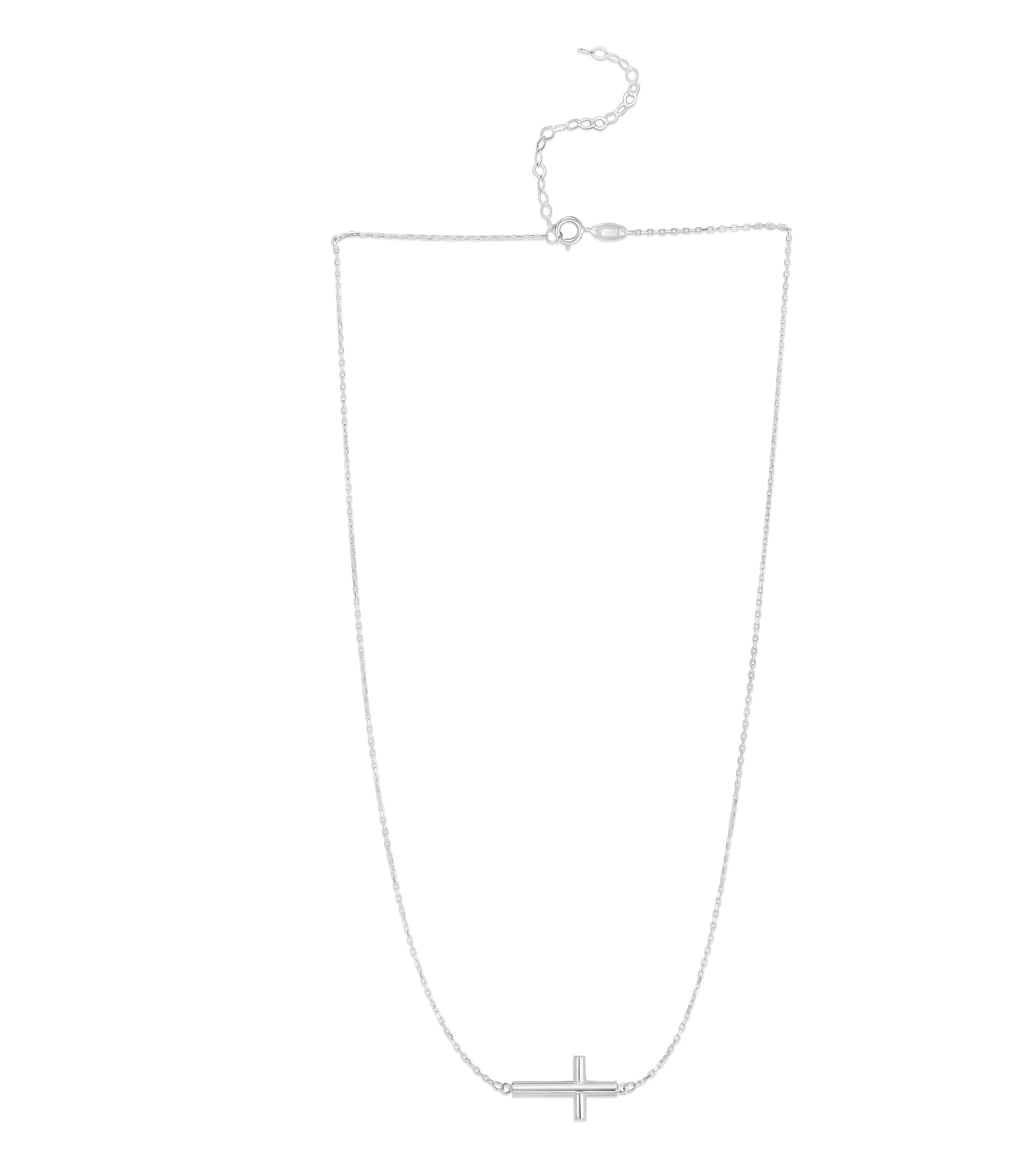 14K White Gold Diamond Cut Sideways Cross Necklace