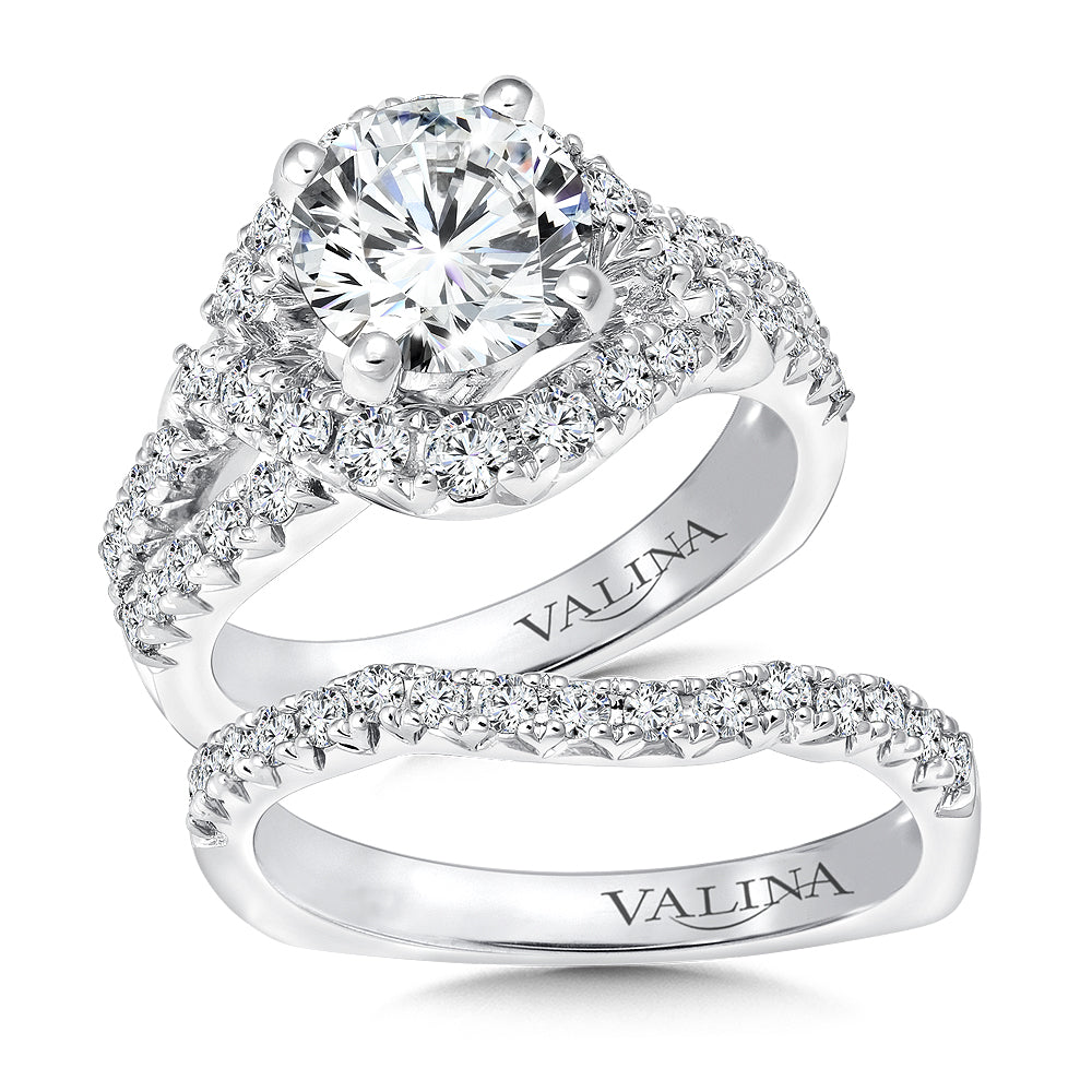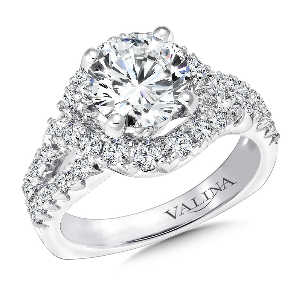 14K White Gold Diamond Halo Bridge Engagement Ring