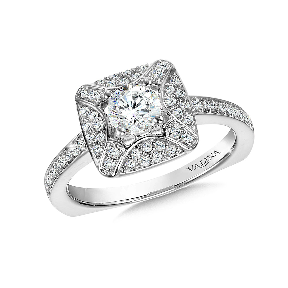 This exquisite 14K White Gold Pave Cushion Halo Engagement Ring is expertly crafted to steal the heart of your beloved. The ring features a cushion pave halo backdrop that frames the round center stone with accented corners. The edge detail on the halo and diamond band add a touch of elegance and sophistication to this timeless piece. The ring comes in 14K white gold, which gives it a regal appearance that lasts for generations. This ring is designed to fit a 1 1/2 carat round center stone, which makes it a perfect fit for those who prefer a more substantial engagement ring. If you're looking for a ring that will make your special moment unforgettable, then this pave engagement ring is the one for you.