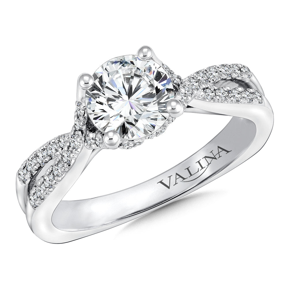 14K White Gold Diamond Scroll Crossover Engagement Ring