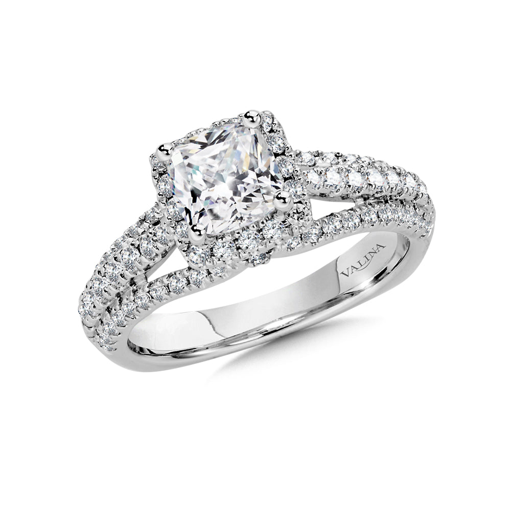 14K White Gold Diamond Square Halo Split Band Engagement Ring