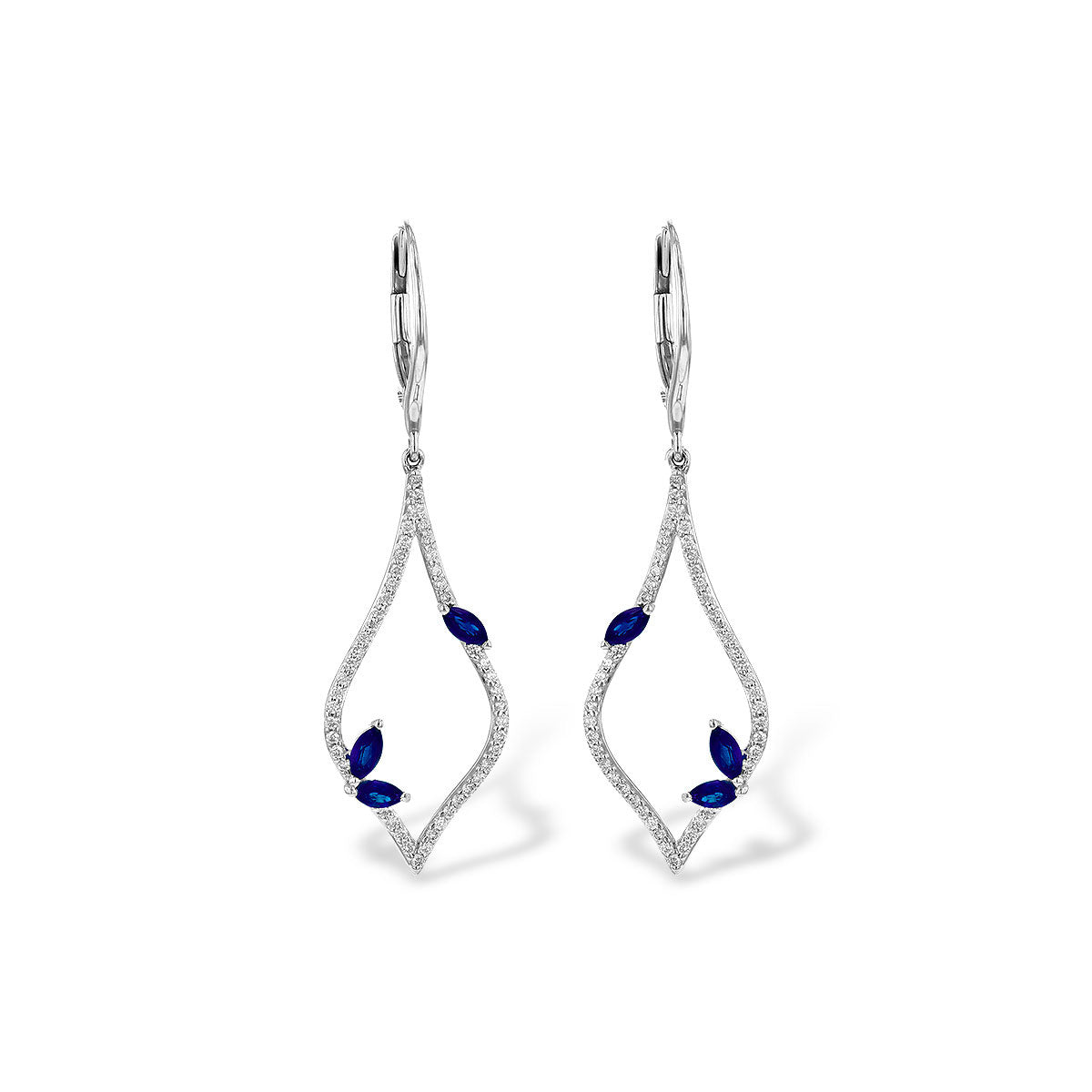 14K White Gold Diamond Teardrop Sapphire Accent Earrings