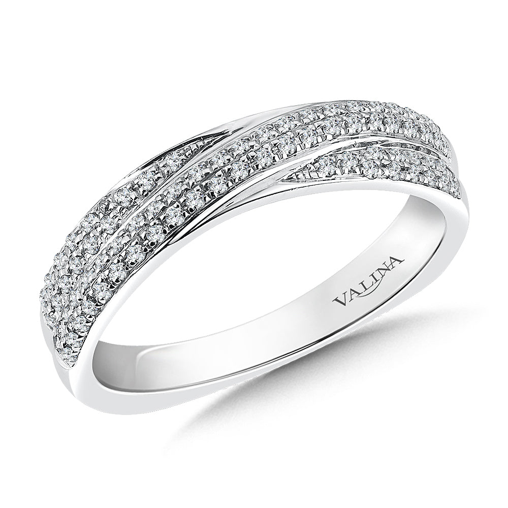 14K White Gold Double Diamond Pave Crossover Wedding Band