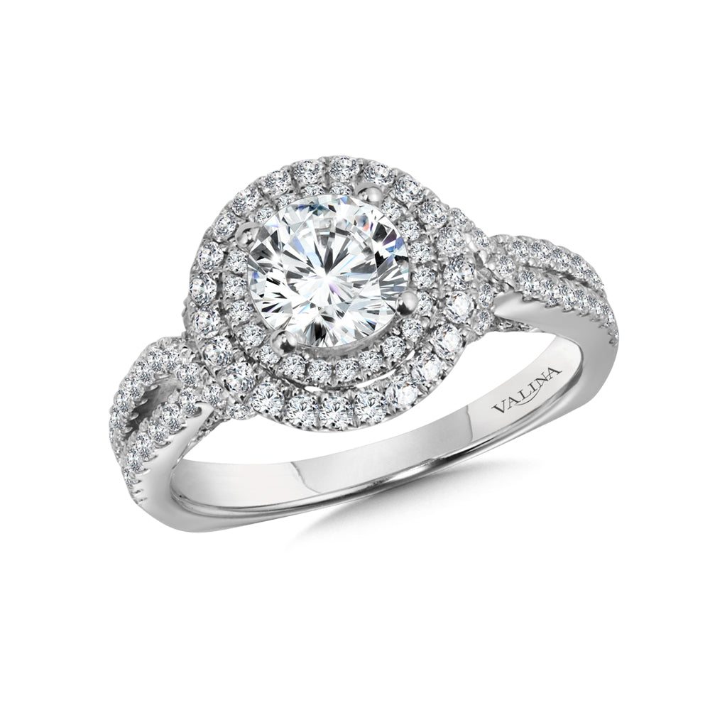 14K White Gold Fancy Double Round Halo Engagement Ring