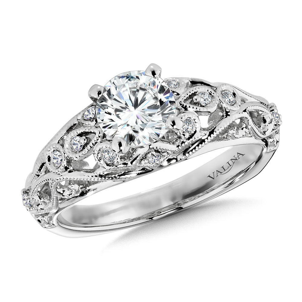 This 14K White Gold Filigree Diamond Engagement Ring is a masterpiece of intricate craftsmanship and elegance. The fancy openwork filigree design is accented by shimmering diamonds to create a unique and stunning piece of jewelry. The milgrain detailing adds a touch of vintage charm to the ring, while the European Shank ensures comfort and ease during wear. Made with premium quality 14K white gold, this engagement ring mounting is sure to dazzle and impress anyone who sees it. The beautiful design and premium materials make this ring an ideal choice for those looking for a unique and sophisticated engagement ring.