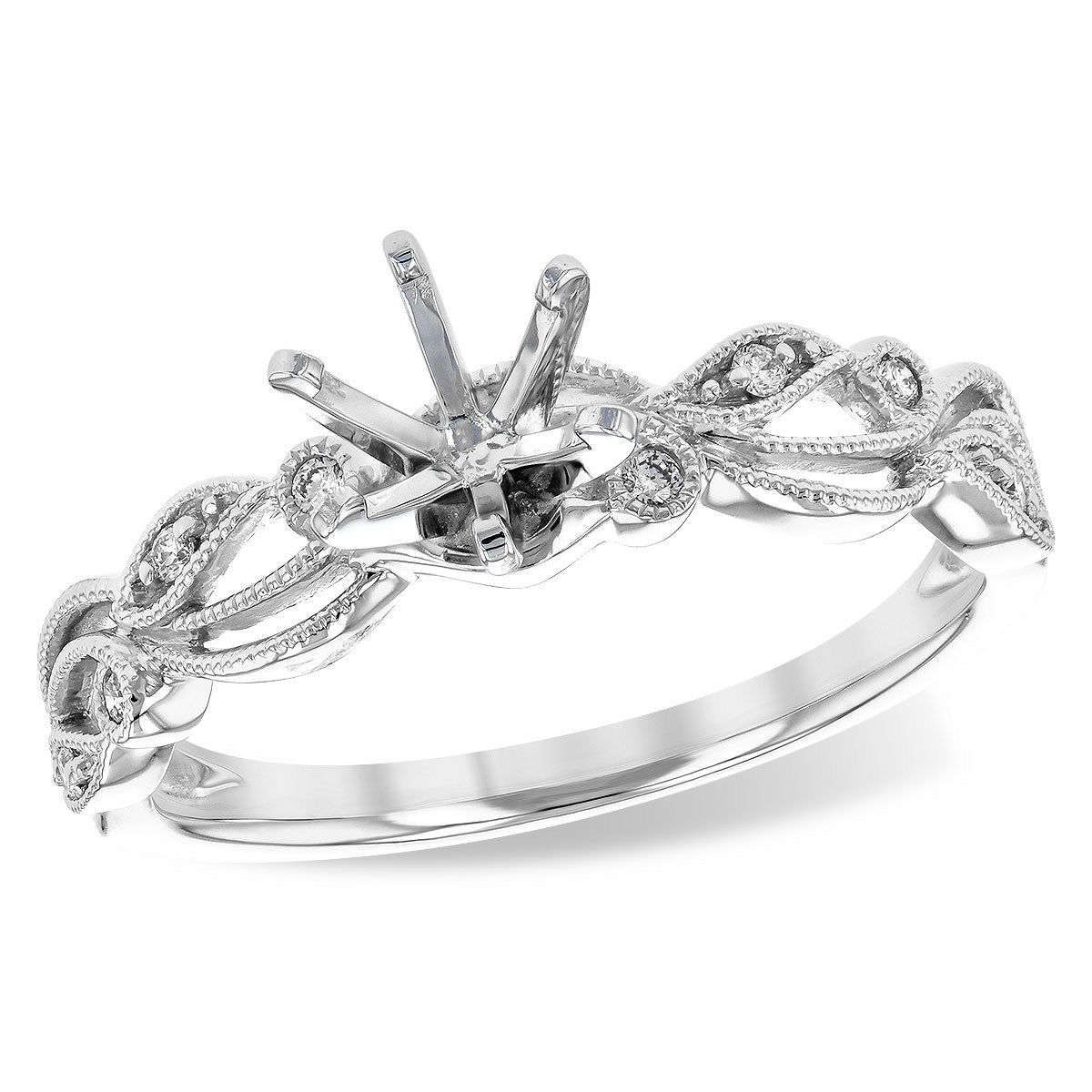14K White Gold Floral Diamond Semi-Mount Engagement Ring