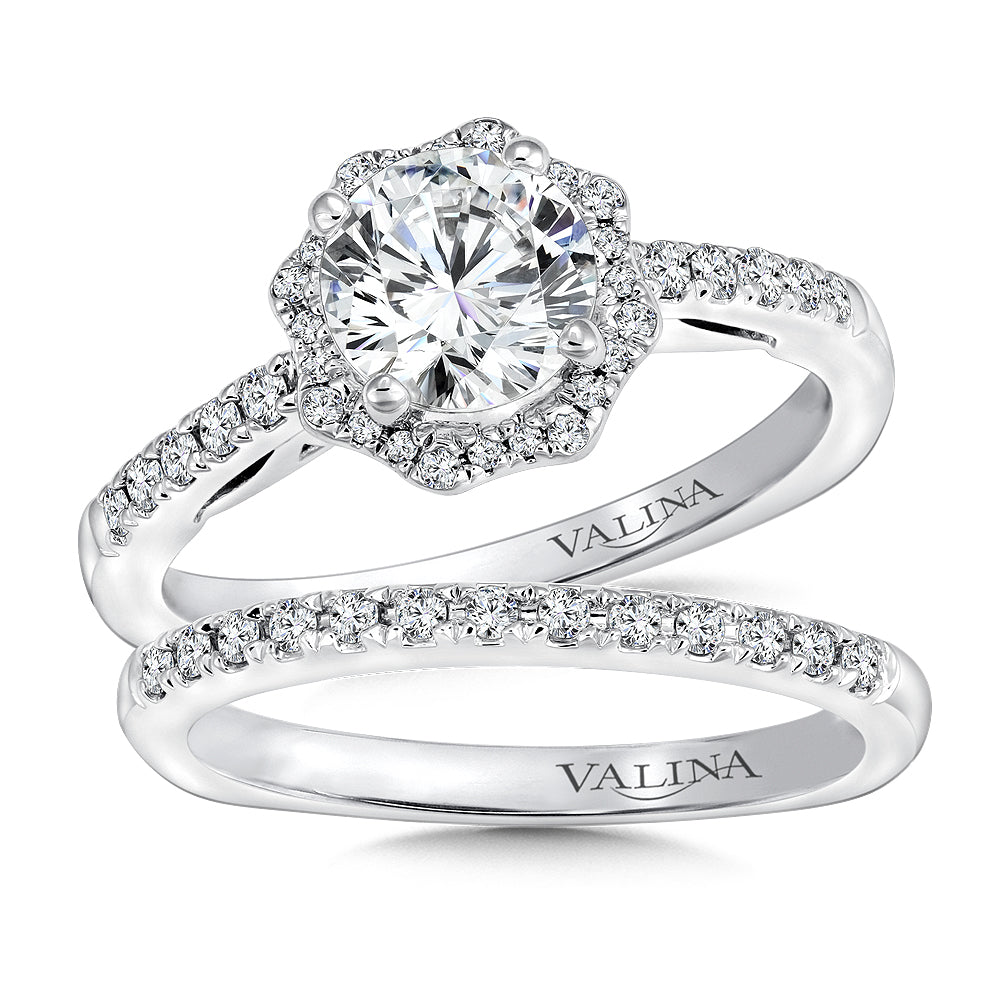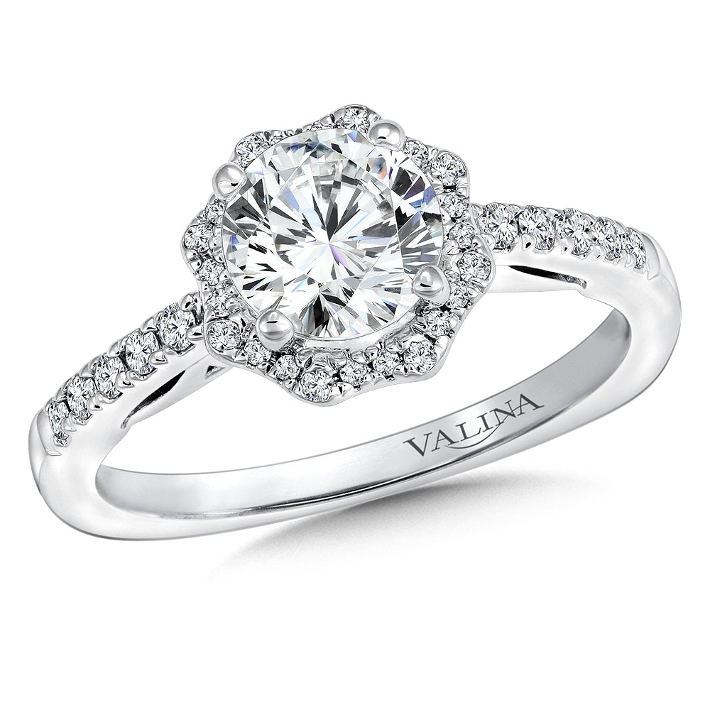 14K White Gold Floral Shape Vintage-Style Diamond Halo Engagement Ring
