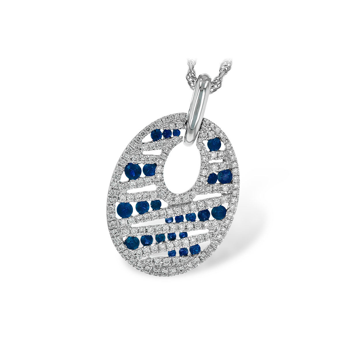14K White Gold Geometric Sapphire & Diamond Pendant