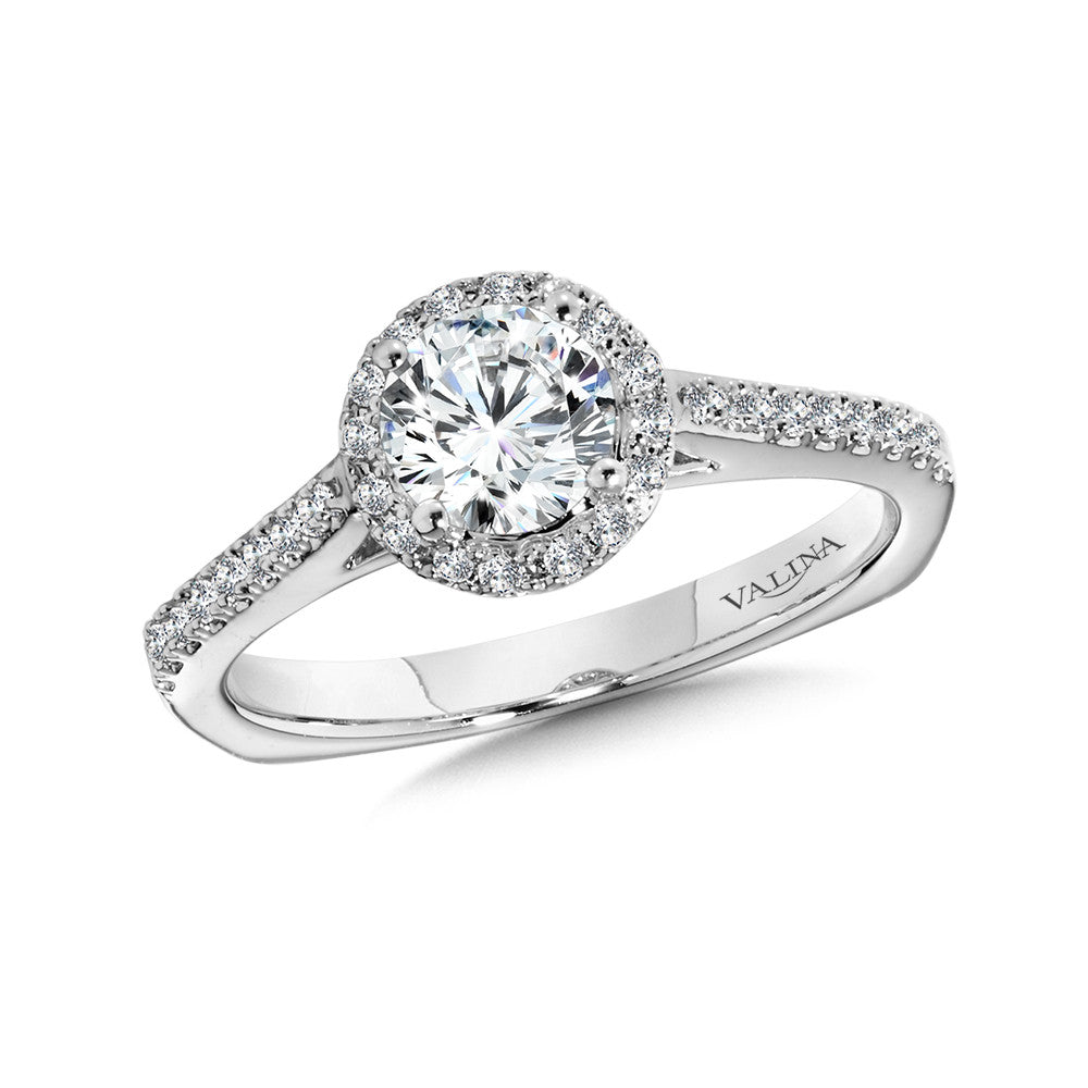 14K White Gold Petite Round Diamond Halo Engagement Ring