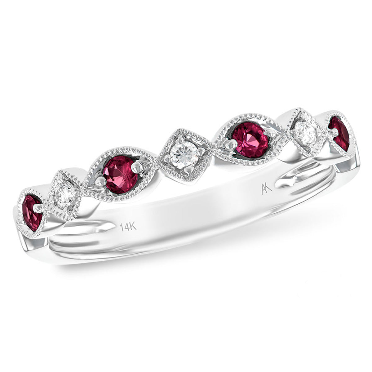 14K White Gold Ruby & Diamond Stackable Wedding Band
