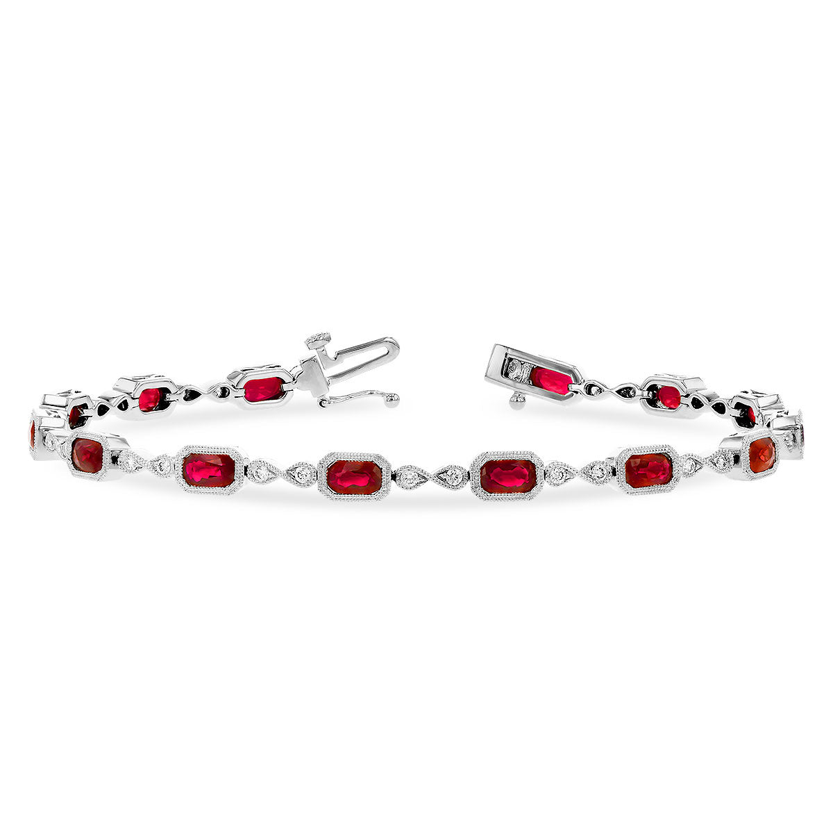 14K White Gold Ruby & Diamond Tennis Bracelet