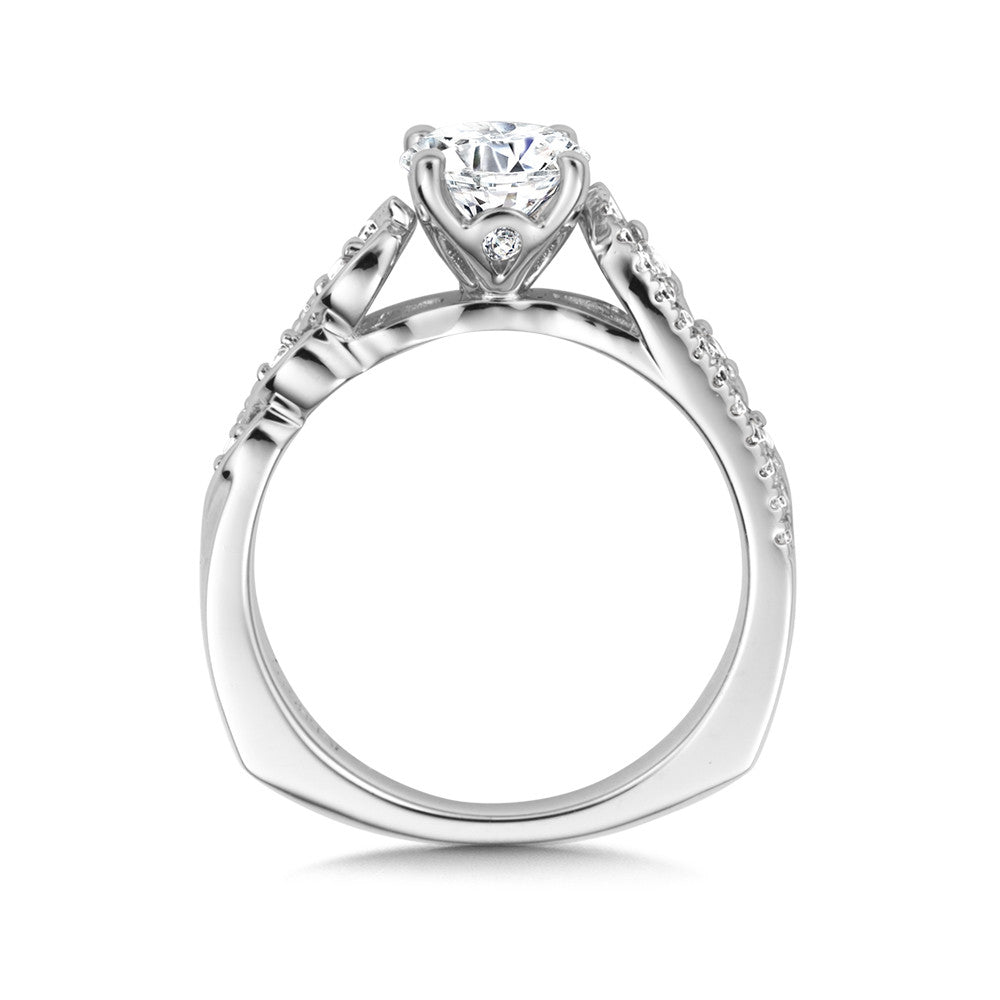 This exquisite 14K White Gold Scalloped Diamond Engagement Ring is a perfect embodiment of elegance and grace. The ring boasts a stunning array of diamonds that are expertly crafted to showcase individual scallops framing accent diamonds bordered by an asymmetrical fringe of pave diamonds. The brilliance of the diamonds is further enhanced by the 14K white gold band. The European shank band is both comfortable and stylish, making it easy to wear on a daily basis. This engagement ring is the perfect choice for a woman who appreciates the finer things in life.