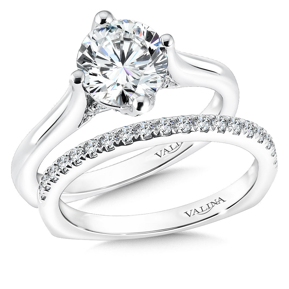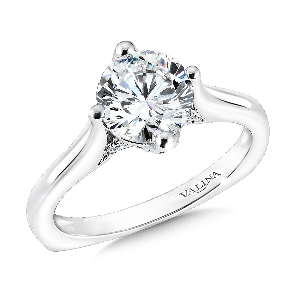 14K White Gold Solitaire Diamond Accent Engagement Ring