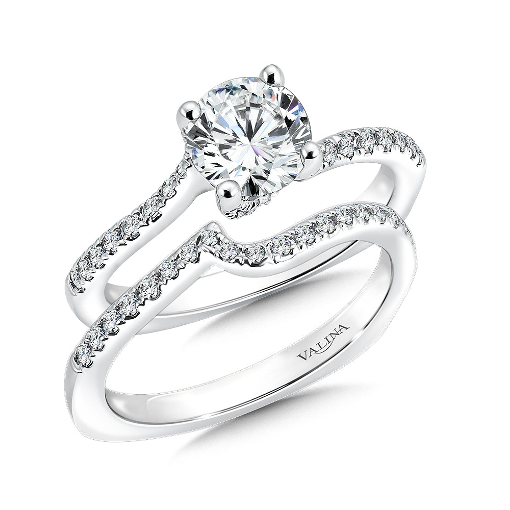 14K White Gold Spiral Style Accent Stone Engagement Ring