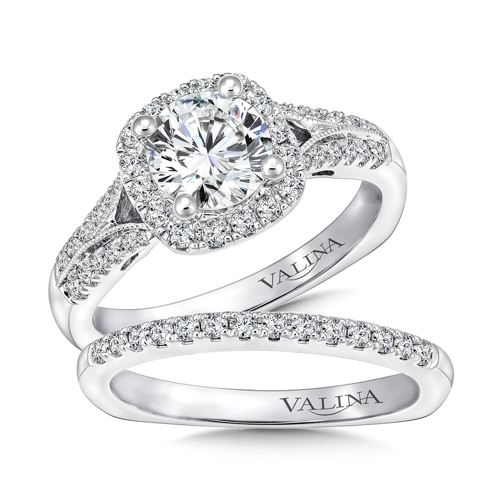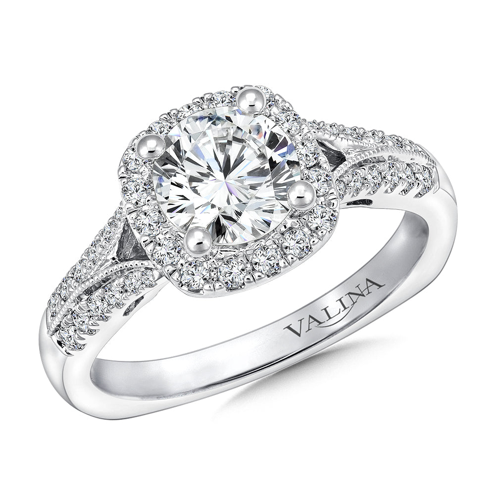 14K White Gold Split Shank Cushion Shape Halo Diamond Engagement Ring
