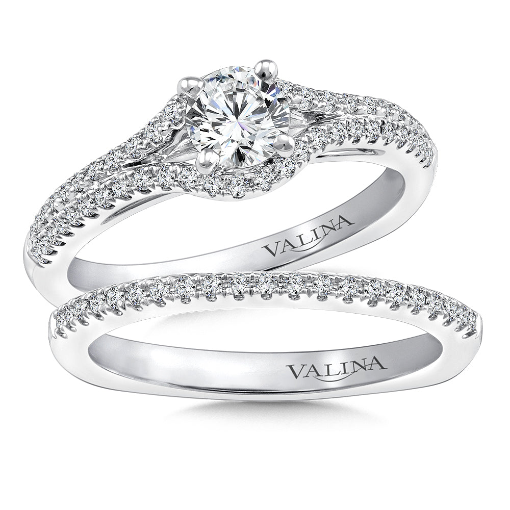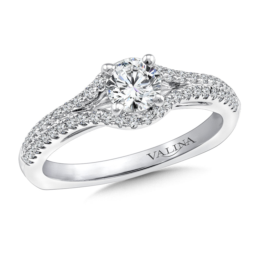 14K White Gold Split Shank Round Diamond Engagement Ring