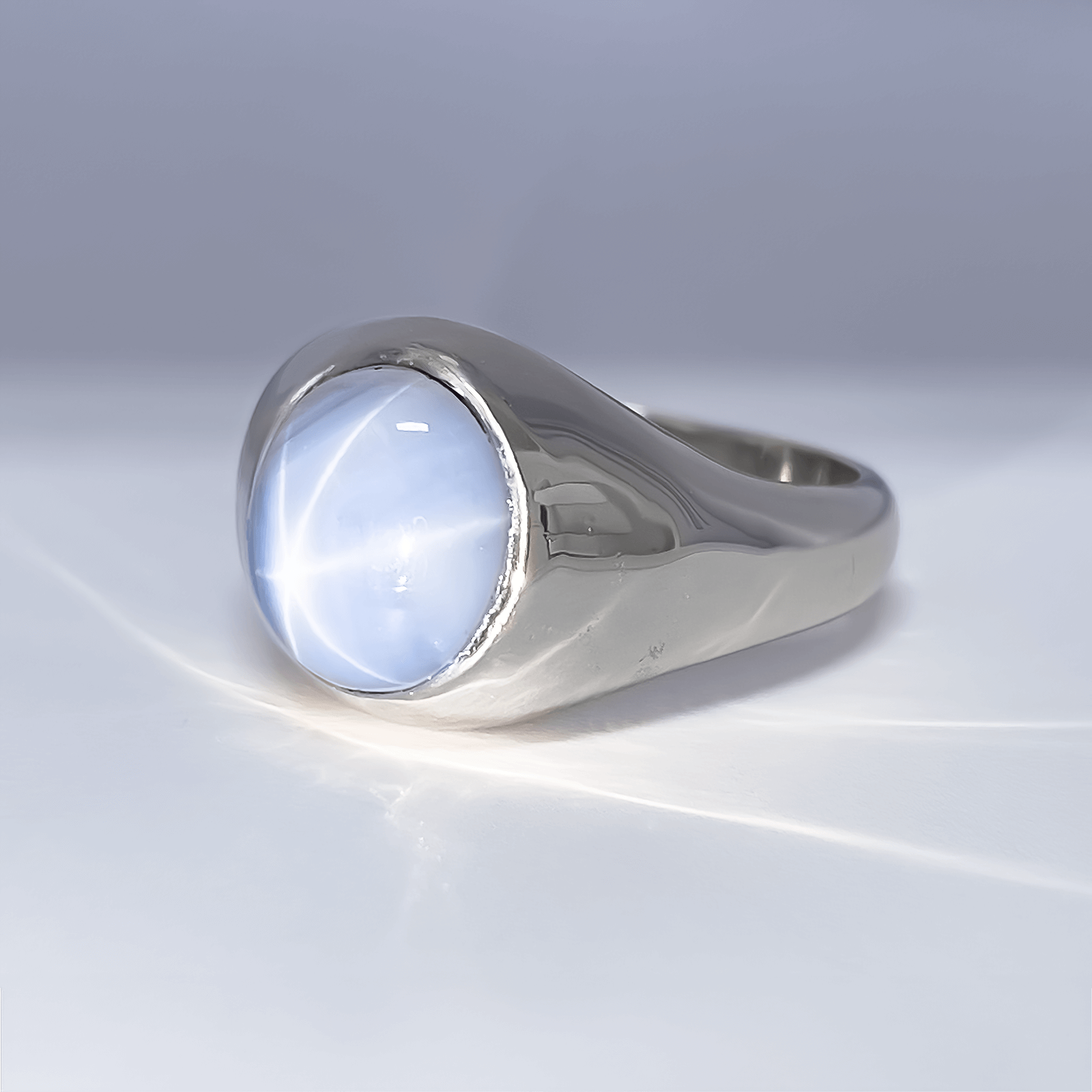 The 14K White Gold Star Sapphire Ring is a true masterpiece that exudes timeless elegance. Crafted with solid and heavy 14K white gold, this ring showcases a mesmerizing grey star sapphire. The sapphire's sharp 6-ray star and exceptional clarity make it a captivating centerpiece. With a size of approximately 13mm x 11mm and weighing approximately 12 carats, this ring is sure to make a statement. The design of the ring is carefully crafted to enhance the natural beauty of the sapphire while allowing light to dance through the stone. The white gold setting adds a touch of sophistication and complements the sapphire perfectly. This ring is a perfect blend of luxury, style, and craftsmanship. Whether worn as a fashion statement or given as a special gift, this ring is a true symbol of elegance and refinement. It is a piece that will be cherished for a lifetime and handed down through generations.
