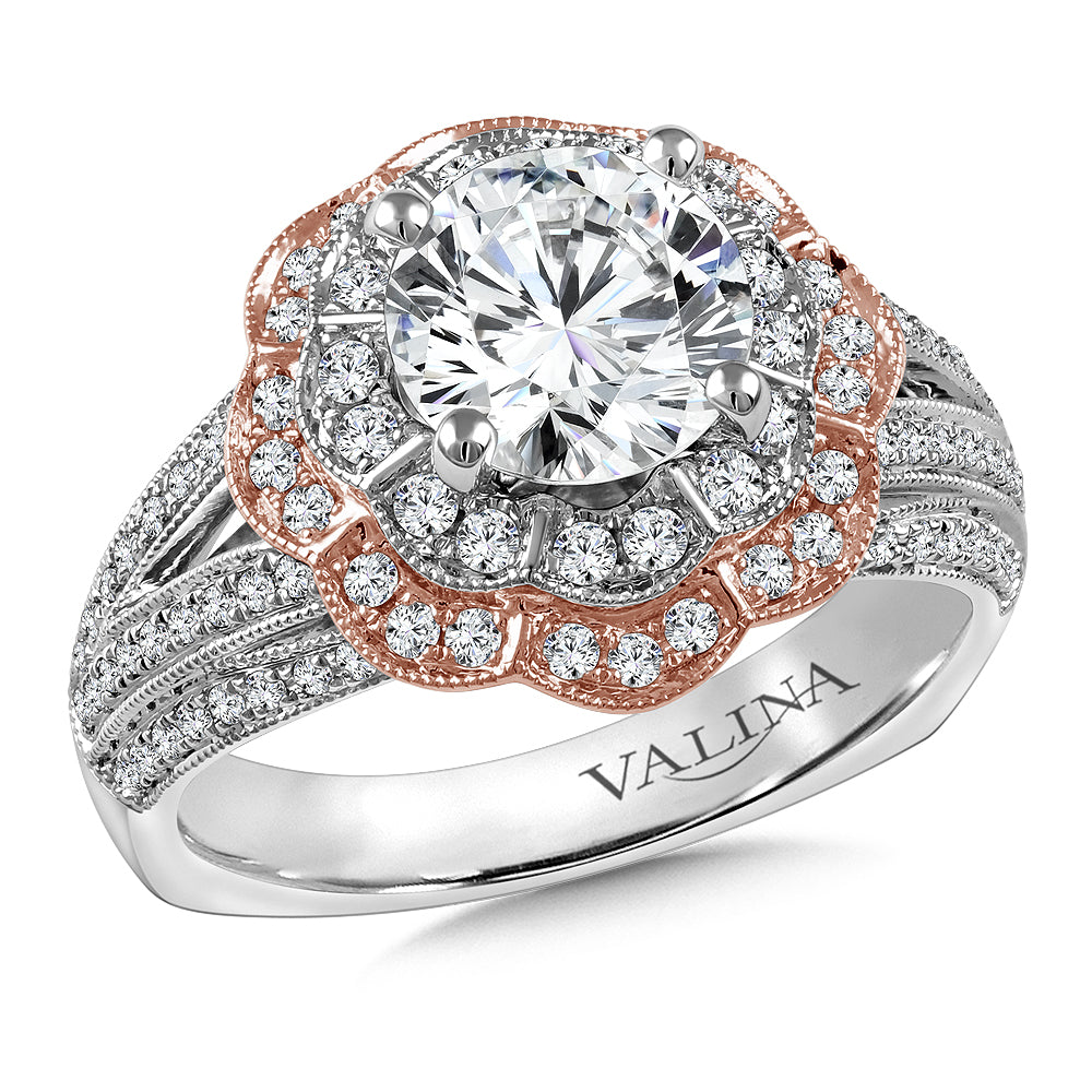 14K White & Rose Gold Floral Double Halo Engagement Ring