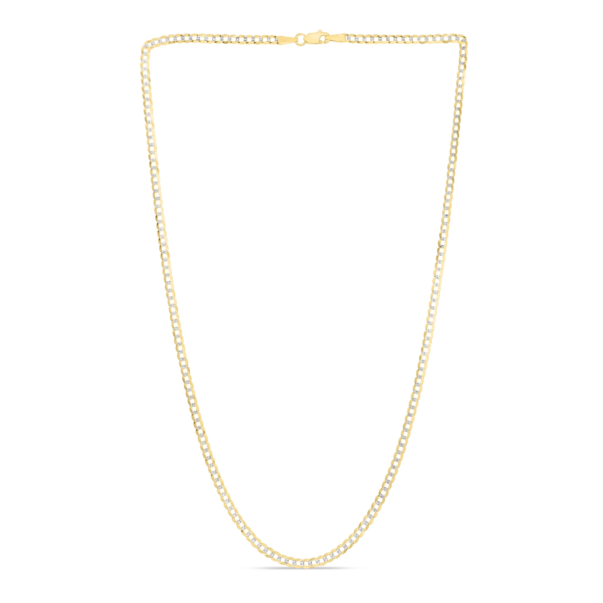 14K Yellow Gold 2.6mm White Pave Curb Chain Necklace